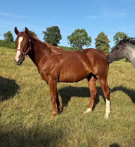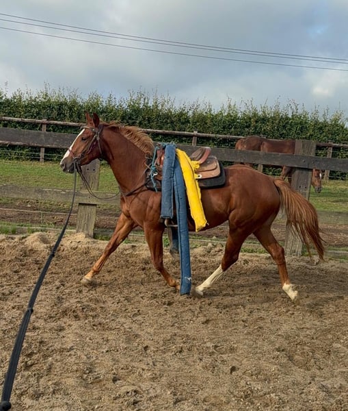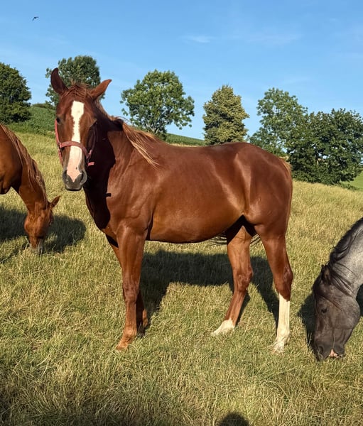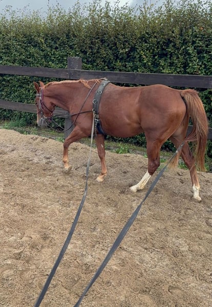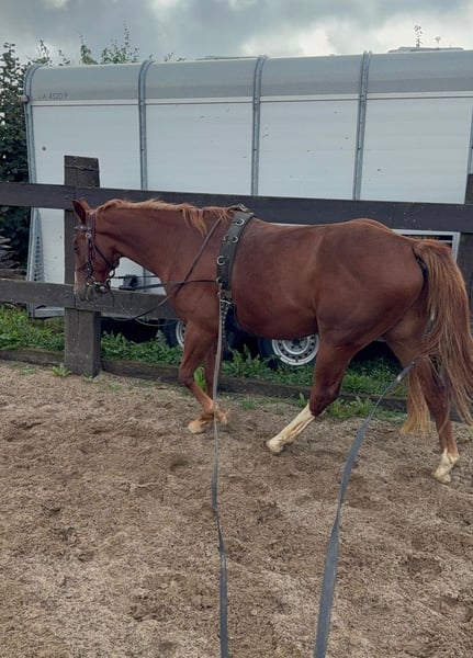 For sale is a 2-year-old (05.2023) Quarter Horse gelding with an excellent pedigree. He is very well and strongly built and will be approximately 153cm tall. He shows great movement and is absolutely gentle to handle. He already knows quite a bit, loads without any problems, stands calmly tied, and enjoys working with ground work. He is already comfortable with a saddle, knows lunging, and driving in double lunge lines. Due to his age, he has not yet been backed but is well-prepared. He has grown up in a species-appropriate herd and is familiar with both open stabling and boxes. If you are looking for a great partner to train yourself for leisure or sport, he is the right choice for you. No known illnesses or allergies. A vet check is welcome. We charge €35 for trying out the horse. This amount will be credited upon purchase. Feel free to call or send a message to 0157 36803742. All information is without guarantee, price changes reserved, transport possible, online purchase available.