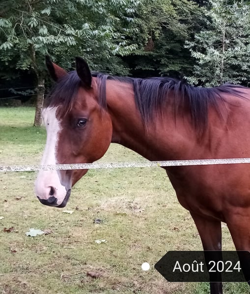 Vends très beau paint horse pp, 4 ans mars 2026. Yeux partiellement bleu foncé. Débourré, monté en carrière aux trois allures. Est déjà parti en balade en groupe plusieurs fois, s'est très bien comporté. Pas peureux, calme. Encore jeune en main, un petit peu de caractère parfois. Pieds nus. Pour loisir, balade.