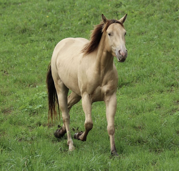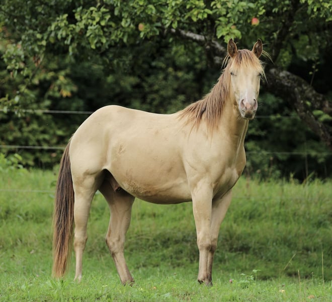 "Kizz" is a super sweet, friendly young QH gelding who thinks he is more of a dog than a horse. He is very easygoing and does everything expected of him, loves children, and enjoys cuddling a lot. He is a small gelding with a height of about 1.40m, yet he is harmonious and has a strong build appropriate for his size, with short, sturdy legs. Due to his small size and his very affectionate character, he makes the perfect companion for children, teenagers, and light small adults who do not want to feel overwhelmed on a horse. Kizz is growing up in a herd environment appropriate for his age and is very well socialized, healthy, sure-footed, and robust. 6 Panel N/N.