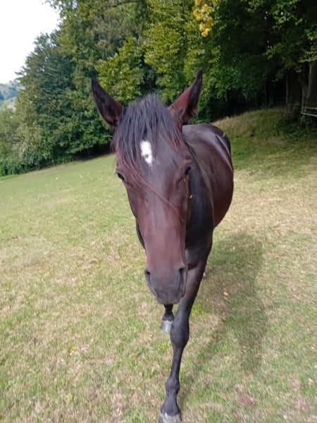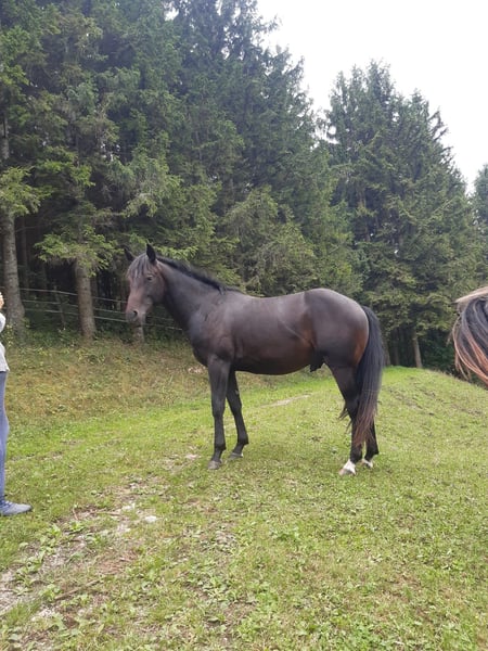 *Im Auftrag* Verkaufe American Quarter Horse Wallach – Jungpferd 2023 Pferdepass mit vollständigem Stammbaum vorhanden. Diamonds Evolution wurde sehr liebevoll aufgezogen - feines Wesen - bestens sozialisiert und lebt in einer mittelgroßen, gemischten Herde. Der Bub überzeugt durch sein korrektes Exterieur und wunderbare weiche Gänge sowie ein Stockmaß von ca. 150 cm. Diamond ist ein sehr dunkler chestnut mit weißem Stern und zwei halbweiße Fessel an den Hinterbeinen. Er wird von seinen Besitzern als echter Allrounder beschrieben – beste Reininglinien - Trail- und Orientierungsritte (mutig beim Spazieren), aber auch in der englischen Reitweise vorstellbar. Diamond ist sehr sensibel, menschenbezogen und besitzt ein außergewöhnlich großes Vertrauen in den Menschen. Ob über Brücken, durch Wassergräben oder in neue Situationen – er folgt seinem Menschen ruhig und ohne Probleme. Er lässt sich überall anfassen, problemlos in den Hänger führen und zeigt keinerlei Unarten. Leichte Bodenarbeit wurde bereits gemacht, er ist stets motiviert und lernwillig. Gesund, klar im Kopf und auf der Suche nach einem liebevollen Lebensplatz, bei dem seine feine Art geschätzt wird. Aufgrund seiner sensiblen Art wird er nicht an Schul- oder Therapiebetriebe abgegeben. Abgabe erfolgt aus familiären Gründe. Platz vor Preis!! Besichtigung nach Vereinbarung möglich. Bei Interesse oder Fragen gerne melden (lekothi@gmail.com).