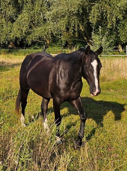 SHINERS BACK N BLACK Rufname: Duke AQHA- & DQHA-registrierter Wallach | geboren April 2023 | NN6 Mit SHINERS BACK N BLACK, Rufname Duke, bieten wir einen jungen American Quarter Horse Wallach an, geboren im April 2023 in Deutschland, der durch seine Abstammung, seine Einstellung und seinen Arbeitswillen überzeugt. Er ist AQHA-registriert, bei der DQHA geführt und wurde auf der DQHA-Zuchtschau vorgestellt, wo er eine Gesamtbewertung von 83,52 Punkten erhielt. Abstammung Vater: ONE SHINEY TREAT Mutter: LIL COW PADDIE Weitere in den Papieren geführte Vorfahren sind u. a.: SHINING SPARK, GENUINE DOC, DIAMONDS SPARKLE, DOCS LUCKY NUMBER, PEPPY SAN BADGER, GREYHOUND STEP, PATIENCES REWARD. Genetik NN6 (Six Panel negativ) getestet frei von HYPP, HERDA, GBED, PSSM1, MH und IMM Charakter & Umgang Duke zeigt sich als: motiviert arbeitswillig aufmerksam gelehrig mit deutlich erkennbarer Freude an Arbeit und Beschäftigung Im täglichen Umgang ist er: halfterführig verladefromm schmiedefromm an viele Außeneinflüsse gewöhnt, darunter Hunde, Autos, Traktoren sowie allgemeiner Stall- und Hofbetrieb Duke bringt viel Motivation und Potenzial mit und möchte gefördert und beschäftigt werden. Wir wünschen uns daher bewusst erfahrene Hände, die Freude daran haben, mit einem jungen, arbeitsfreudigen Pferd weiterzuarbeiten und sein Potenzial weiterzuentwickeln. Wir kauften ihn zusammen mit seinem Halb-)Bruder, damit der Bruder in unserer kleinen Gruppe nicht als einziges Jungpferd steht. Von Beginn an war klar, dass wir ihn nicht behalten. Er kennt somit andere Pferde (jung und alt) und kann problemlos in eine Gruppe integriert werden. Wobei sich schon abzeichnet, dass er nicht zu den rangniedrigen gehört. Eckdaten Name: SHINERS BACK N BLACK Rufname: Duke Geschlecht: Wallach Geburtsmonat: April 2023 Zuchtland: Deutschland Züchter: Iver Hansen Papiere: AQHA Certificate of Registration & DQHA-Unterlagen vorhanden