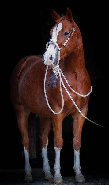 Sorrel with 4x white ! Liroy is a super handsome and perfectly built yearling. A top young sport and leisure partner who has a lot of potential. He has very nice movements and a great foundation. Standing in the old Quarter type. He has a very cool and old branch pedigree. Sire Ricochet Rooster , Gallo del Cielo And mom a Shine N Mister , Shining Spark , Smart Little Lena mom ! Nrha Germany paid in On request EWU