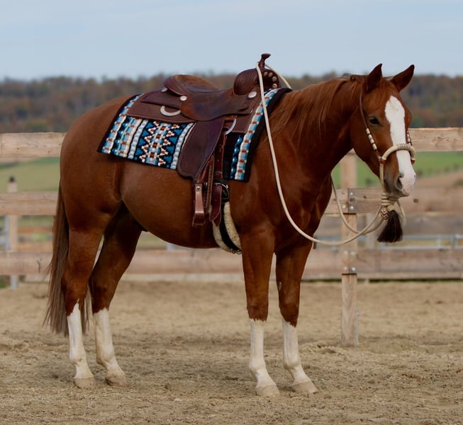 Sorrel mit 4x weiß ! Liroy ist ein super hübscher und perfekt gebauter Quarter. Ein top Nachwuchs Sport und Freizeit Partner der viel Potential hat. Er hat sehr schöne Bewegungen und hat ein tolles Fundament. Im alten Quarter Typ stehend. Er hat eine sehr coole und alte Astammung. Vater Ricochet Rooster , Gallo del Cielo Und Mama eine Shine N Mister , Shining Spark , Smart Little Lena Mama ! Unterm Sattel gestartet und ist sehr einfach und unkompliziert mit viel Talent. Nrha Germany eingezahlt Auf Wunsch EWU