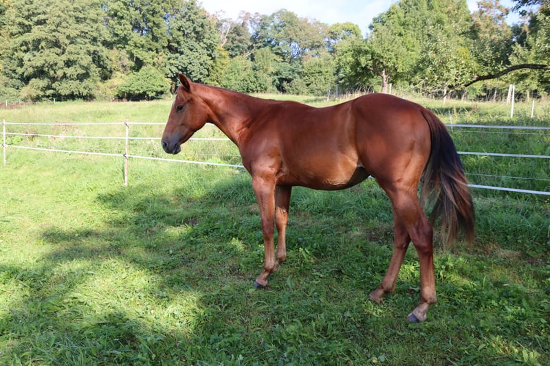 AH THE AMAZING SPOOK est un hongre sociable et amical qui grandit en troupeau. De plus, il est régulièrement vacciné, vermifugé et présenté au maréchal-ferrant. Le cheval est enregistré auprès de la NRHA Germany.