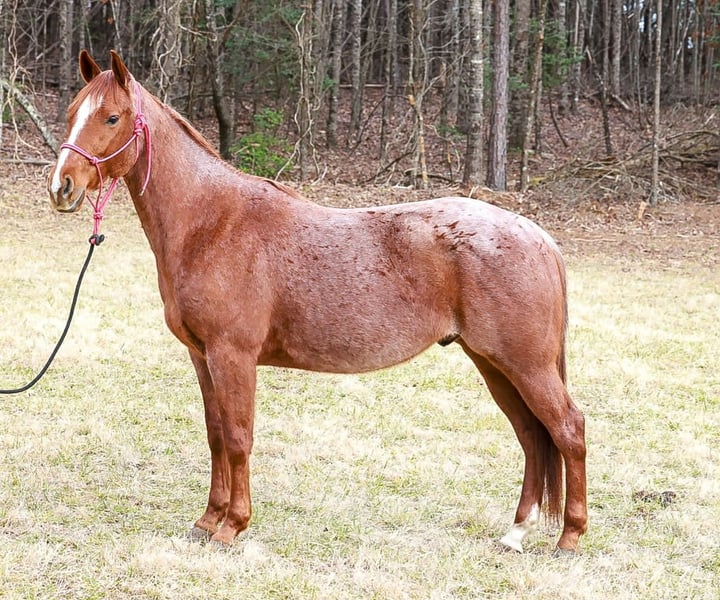 🌟𝑨𝒑𝒓𝒊𝒍 𝐀𝐋𝐋 𝐒𝐓𝐀𝐑 𝐋𝐈𝐍𝐄𝐔𝐏🌟 Happening now thru MONDAY | APRIL 6th - Available EXCLUSIVELY on HorseBid's website! For more details and to register visit: www.Horsebid.com CONSIGNOR CONTACT: Richman Family Farms 706-897-6721 LOCATION: Blairsville, GA BREED: QH REGISTERED: Yes REGISTERED NAME: Lil Mo Enterprise COLOR: Red roan HEIGHT: 14.3 AGE: 4 GENDER: Gelding Lil Mo a 4yr old Registered Red Roan AQHA Gelding. Mo has the breeding and the moves to be an exceptional athlete. He has a very good one handed neck rein, moves off leg pressure, and is super soft in the bridle. He will take both leads with ease in the arena. Mo is very gentle to be around and very easy to get along with. He has been ridden in the North GA mountains for the last 6-7 months. We have trail ridden him all over our farm, as much as we have literally took him to town and rode all over. I’ve used him pushing cattle around and checking fences. He’s been nothing shy of a gentleman since he has been with me and my family. He is always there at the gate waiting on us to start the day. I swear he is more dog than horse. Mo will W/T/C or just lope right out of his tracks from a dead standstill. He will cross tie in our wash-rack to bathe him. Mo stands great for the farrier as well as he does to be mounted. He sales UTD shots, shoes, coggins, and deworming. I can help with transportation as well. Feel free to call anytime if you have any questions. 706/897/6721