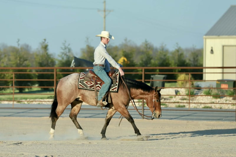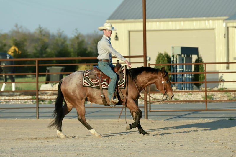 ⚜️𝐭𝐡𝐞 𝓔𝓵𝓲𝓽𝓮 𝐒𝐩𝐫𝐢𝐧𝐠 𝐂𝐥𝐚𝐬𝐬𝐢𝐜⚜️ Happening now thru MONDAY | APRIL 20th - Available EXCLUSIVELY on HorseBid's website! For more details and to register visit: www.Horsebid.com CONSIGNOR CONTACT: Heartland Equine 417-793-2253 LOCATION: Mt Vernon, MO BREED: Quarter horse REGISTERED: Yes REGISTERED NAME: Cowboys Tin Star COLOR: Red roan HEIGHT: 14.3 AGE: 4 GENDER: Gelding Cowboys Tin Star aka “Tinsel” is a 4 year old bay roan AQHA gelding standing 14.3 hands. He is absolutely stunning and built like a tank, Tinsel is as shapey as they come. This horse has gone through our program, he has passed every test we have thrown at him and checked all the boxes. Tinsel is uncomplicated to ride making him suitable for any level rider. He is a point & go type of gelding. Plenty of buttons, soft in the face, nice stop and picks up his leads- he is smooth & fun to ride. Moves off leg pressure, stays light in your hands and rides correct. NOTHING phases this young gelding: flappy tarps, water, trail obstacles, traffic, etc. He is prepared to handle anything & everything you could possibly throw at him! He has been used outside and at the feedlot. We have used him to load trucks, sort and doctor cattle. He has been exposed to A LOT! Tinsel is ready to go on with the career of your choosing, the options are endless for a BIG gentle & broke gelding like him! We are very proud to represent a horse of this caliber and can’t wait to see what he accomplishes with his new owners. No buck or bad habits. He is an absolute gentleman, stands to be saddled/mounted. Tinsel is easy to be around, he is a favorite in our barn. You will love his calm, sweet demeanor as much as we do. He loves attention and to be groomed. Very easy to catch. Great for the farrier. Tinsel is sound, sane & ready to move into your barn!