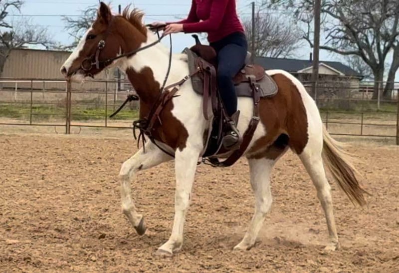 ONLINE AUCTION Place your bids at www.PlatinumEquineAuction.com Starting Bid $3500 Auction ends February 23rd, 2025 Need a new saddle? Check out White Rock Saddles on our website or Facebook! Bunny is a 14.3H, insanely GENTLE 3 yr old paint mare. We’ve been holding this filly as a personal prospect, but she’s just too personable and kind, it’s not fair for her to not be someone’s number one! This young prospect can go in absolutely ANY direction. She is so gentle, a kid could go on with her as she is now! Bunny has already seen more than most horses triple her age. She’s been roped on in the pasture, seen countless miles of pasture and trails and she’s even very lightly been started on the barrel pattern. She is so sweet and absolutely so willing. She has ZERO buck, bolt or rear and is one of the easiest babies we’ve ever had the pleasure to work with. We typically don’t represent anything thing young, but she is an exception to our rule because she is so incredibly gentle and safe! Bunny is a stellar prospect and the best part is, she’s safe enough for the novice rider too! She’ll make anything from a rope horse to a barrel horse or even kids playday horse! If all you desire is trails, saddle her up tomorrow and go! Bunny rides good, neck reins, direct reins, moves off leg and naturally has a big stop! She is quiet and well mannered in all aspects. She stalls or turns out well and will walk right up to you on 100 acres. She absolutely LOVES attention and wants to be your best friend. There isn’t a thing we don’t like about this filly! She loads, leads, bathes, and ties great too! Bunny is UTD on teeth, feet and coggins and ready to go be someone’s number one! More pics and videos on her website page at northtexashorsecompany.com/bunny. Please call Blair with North Texas Horse Company for more info at 817-757-3046. We are located in Weatherford, TX and can help arrange affordable shipping to anyone!! ONLINE AUCTION Place your bids at www.PlatinumEquineAuction.com Starting Bid $3500 Auction ends February 23rd, 2025 Need a new saddle? Check out White Rock Saddles on our website or Facebook!