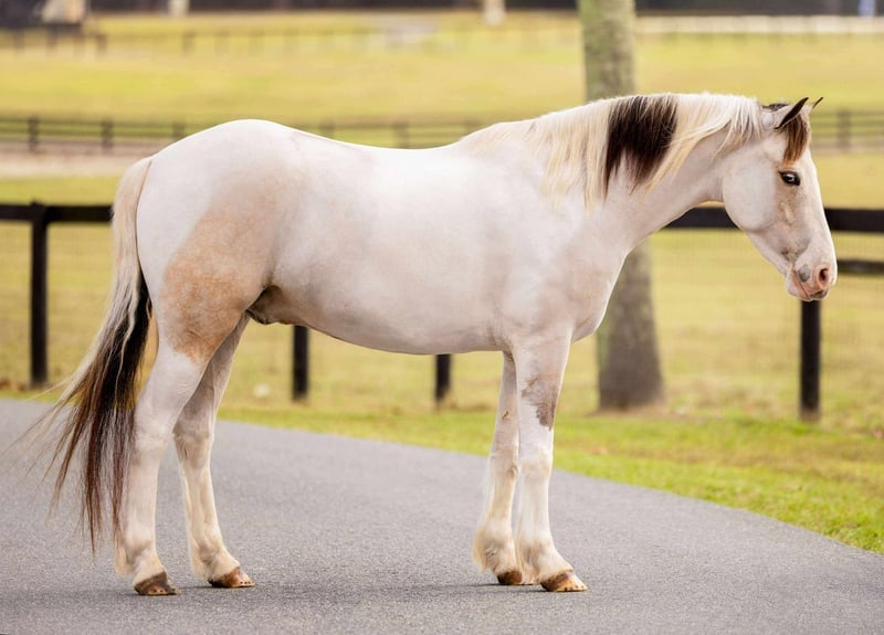 ⚜️𝐃𝐞𝐫 𝐇𝐞𝐫𝐢𝐭𝐚𝐠𝐞 𝐖𝐢𝐧𝐭𝐞𝐫𝐂𝐥𝐚𝐬𝐬𝐢𝐜 ⚜️ Findet jetzt bis MONTAG, 29. DEZEMBER, statt – exklusiv auf der Website von HorseBid! Weitere Infos und Anmeldung unter: www.Horsebid.com VERKÄUFERKONTAKT: 3S Showing & Sales LLC 919-810-0760 STANDORT: Ocala, FL RASSE: Quarter Horse / Welsh / Gypsy ZÜCHTUNG: Nicht registriert FARBE: Buckskin Paint HÖHE: ca. 1,65 m (13.2 hh) ALTER: 4 Jahre GESCHLECHT: Wallach Winnie the Pooh, auch bekannt als „Popcorn“, hat alle kindgerechten Tests bestanden – und noch viel mehr! Wir haben ihn immer Popcorn genannt, doch letzten Monat hat Paisley uns offiziell überstimmt und ihn Winnie the Pooh getauft. Seitdem ist Popcorn nur noch sein Spitzname – laut Paisley. Das endgültige Urteil. Keine Einsprüche. Sie hat eindeutig gewonnen! Abgesehen von seinem Namen ist Winnie the Pooh der Pony, von dem jeder Reiter träumt. Trotz seines jungen Alters (bald 4 Jahre alt im Jahr 2026) wurde er schon mit mehr Erfahrungen konfrontiert als viele ältere Ponys in ihrem ganzen Leben sehen. Mit seiner perfekten Größe und seinem robusten Körperbau ist er ein unglaublich vielseitiger, vertrauensbildender Partner – geeignet für Kinder und Erwachsene gleichermaßen. Er wurde von den kleinsten Kindern geritten und bleibt dabei völlig unerschütterlich – absolut kein Spook, so sicher wie nur möglich. Ob er sich vollständig in eine schüttelnde Plane einwickeln lässt, im Cross-Country oder in der Arena springt oder sogar in den Kofferraum eines Pick-up-Trucks springt, Winnie the Pooh nimmt alles gelassen. Er fährt selbstbewusst auf der Straße, gibt Reitstunden, zieht ruhig eine Kutsche und ist sogar schon bei uns im Haus gewesen. Regelmäßig reiten wir ihn durch die Stadt, und er war schon beim Einkauf in landwirtschaftlichen Geschäften dabei. Es gibt kaum etwas, was dieses Superstar-Pony noch nicht gesehen oder gemacht hat. Sogar der Hund ist schon auf ihm geritten! Das Einzige, was er nicht kann, ist selbst den Truck zu fahren! Winnie the Pooh besitzt vorbildliche Bodenmanieren. Er ist freundlich, umgänglich und äußerst respektvoll gegenüber persönlichem Raum. Er liebt Aufmerksamkeit und wird gerne von Kindern verwöhnt – der perfekte Babysitter und Nanny-Pony. Viele Kinder reiten ihn barfuß, nur mit Halfter oder sogar nur mit einer Halsschlinge, und er kümmert sich stets vorbildlich um seine Reiter. Unsere kleinste Reiterin, Paisley (8 Jahre alt), liebt es, auf diesem süßen Pony zu reiten, und trabt selbstbewusst überall auf dem Hof herum. Sie kann ihn aus dem Feld holen, anlegen und ganz allein reiten – ohne Hilfe. Das spricht Bände über seine Zuverlässigkeit und sein Temperament. Winnie the Pooh hat die freundlichsten Augen und die süßeste Seele. Er ist der Pony, dem man ohne Zweifel vertrauen kann. Wenn Sie nach einem Pony suchen, das Ihre Kinder in jeder Situation sicher und glücklich begleitet, ist dies Ihr Traumpony. Kurz gesagt: Das ist das Pony, auf das wir auch unsere eigenen Kinder reiten lassen würden – egal, was kommt. Ich könnte ein Buch darüber schreiben, wie besonders dieses Pony ist, aber das Video sagt mehr als tausend Worte! Keine Macken. Keine Schwächen. Winnie the Pooh – auch bekannt als Popcorn – ist genau das Pony, das jeder sucht, und selten verfügbar.