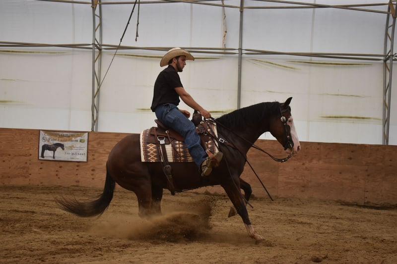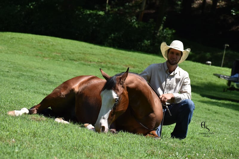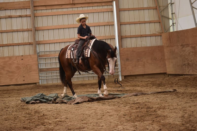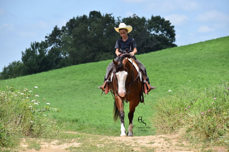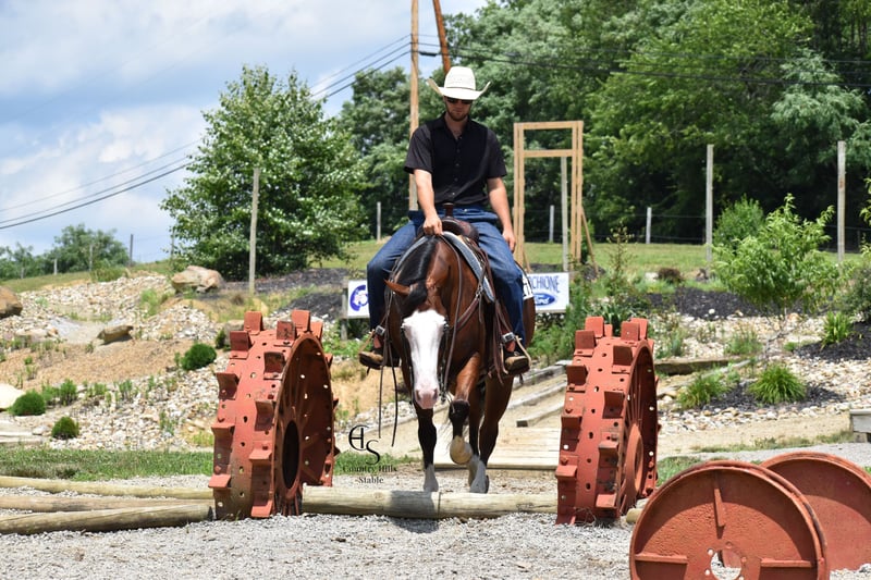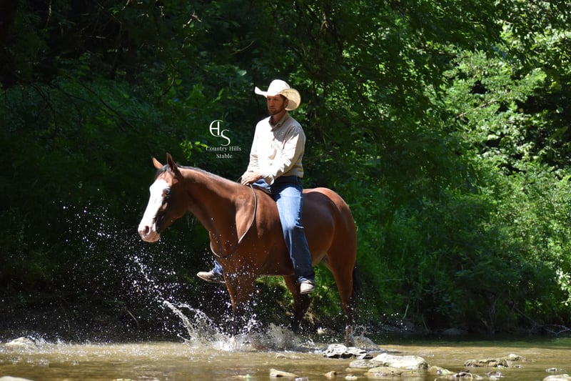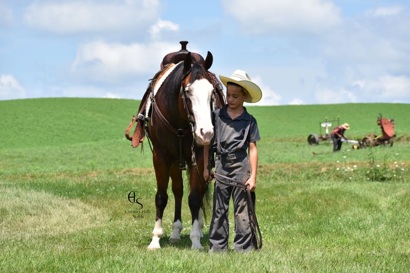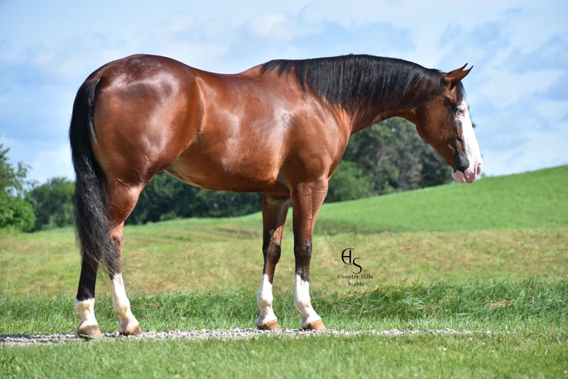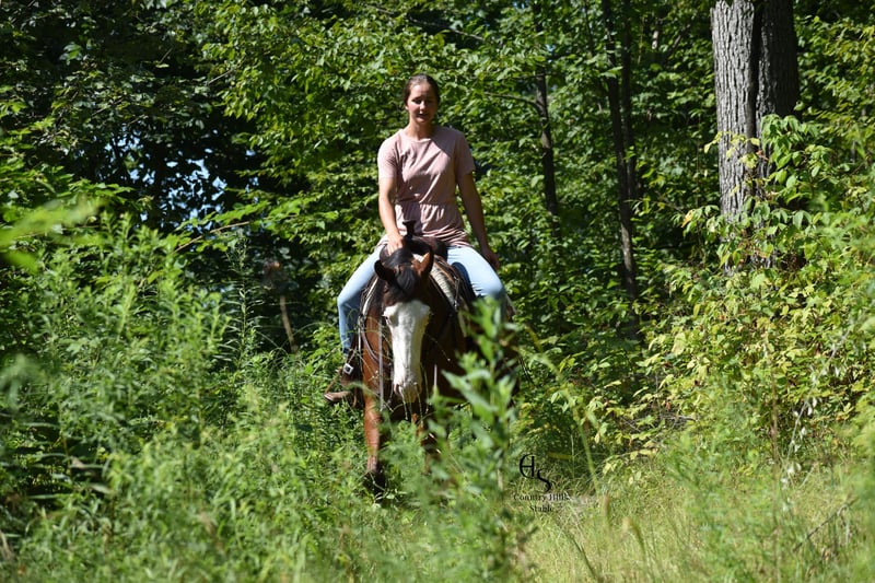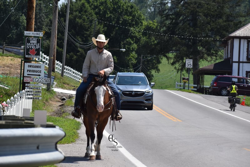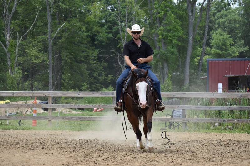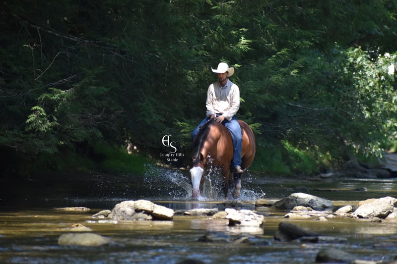 🍂 𝓐𝓾𝓽𝓾𝓶𝓷 𝑨𝑳𝑳 𝑺𝑻𝑨𝑹 𝑳𝑰𝑵𝑬𝑼𝑷 🍂 Happening now thru MONDAY | OCTOBER 6th - Available EXCLUSIVELY on HorseBid's website! For more details and to register visit: www.Horsebid.com CONSIGNOR CONTACT: Country Hills Stable / Eddie Miller 330-365-6443 LOCATION: Baltic OH BREED: AQHA REGISTERED: Yes REGISTERED NAME: Take Out The Gunman COLOR: Bay HEIGHT: 14.3 AGE: 4 GENDER: Gelding Bourbon is a one of a kind, sweet, sweet gelding! He has been a gem to work with and has been a pleasure to have in my program. Bourbon has many miles of trail experience, including several wagon train trips with large groups of horses and was a true gentleman! He is safe in the traffic, on busy roads and riding thru town. He is used to balls, tarps and bull whips. Bourbon has been ridden by beginners and is very trustworthy. He willingly comes up to you in pasture and is happy to greet everyone who enters the barn. Bourbon patiently stands to tack, bathe, clip and shoe. He has been ridden a lot in the arena and moves gracefully thru all gaits, whether in English or Western tack. He will side pass to the mounting block for ease of mounting. Bourbon will neck rein; he jumps, pivots and stops nicely. He has been showed in Ranch riding and brought home some ribbons, so whether you're looking for a horse to pleasure ride on weekends, take him to the show ring or for your kids to tag along, Bourbon will be there for you, and he will look HANDSOME doing it!