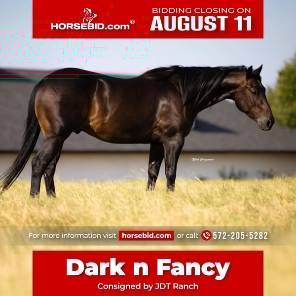 ⚜ The HERITAGE Classic ⚜ Happening now thru MONDAY | AUGUST 11th - Available EXCLUSIVELY on HorseBid's website! For more details and to register visit: www.Horsebid.com CONSIGNOR CONTACT: JDT Ranch 572-205-5282 LOCATION: Crescent, OK BREED: Aqha/apha REGISTERED: Yes REGISTERED NAME: Dark n Fancy COLOR: Brown HEIGHT: 14.3 AGE: 5 GENDER: Gelding Dark N Fancy is the kind of gelding people chase across the country — and rarely catch. At 5 years old, this 1200 lb powerhouse is double registered AQHA/APHA, sound, gentle, and ready to go make someone a ton of money. Sired by Catty Hawk and out of a daughter of Grays Starlight, this gelding is PAID IN FULL to Riata Buckle and absolutely loaded with potential. Here’s the résumé: • Spent his 2- and 3-year-old years in professional working cow horse training • Reiner broke — spins, stops, slides, collects, rides bridleless • Spent his 4-year-old year day working on the ranch — big miles, roped wheat cattle, handles pressure • Recently spent 3 months in calf horse training — and he’s a freak This gelding is built, broke, and ready to win. Whether you’re after pro rodeo-caliber rope talent, versatility futurities, or the Riata Buckle circuit, Dark N Fancy is your ticket to the big time. He’s: • Classy, soft, elegant mover • Light in the bridle, rides on your fingertips • Gentle and honest, but loaded with grit and gas • 100% sound, sane, and polished This is my personal go-to horse on the ranch — he’s the real deal. The hard work is done. If you want to compete, win, and stand out doing it, he’s ready