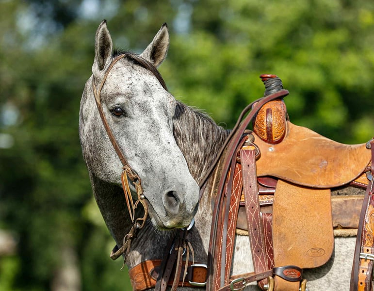 NLINE AUCTION Place your bids at www.PlatinumEquineAuction.com Starting Bid $3500 Auction ends July 27th 2025 Need a new saddle? Check out White Rock Saddles on our website or Facebook LIL KEMO SAHBEE AKA Kemo is a 5 AQHA gray gelding, standing 14.3 hands and stout! Kemo is a tried and true all around gelding! From the arena to the trails, and the ranch, this guy has done and seen it all! Travels out confidently by himself or with other horses. He is remarkably surefooted, you can count on him to pay attention and navigate any terrain you put in front of him. He will go absolutely anywhere you point your reins! He loves water, crosses all type of obstacles and terrain, and has been exposed to all types of wild life, livestock, and machinery! Kemo is great in all types of trail group settings, and will lead the pack or follow! If you enjoy the weekend show life, or love riding in the arena, you can also count on Kemo to be your partner! You’ll love taking him for a spin in the arena! Kemo is a naturally good mover, he carries himself well, has a good stop, easy back up, side passes to open/close gates. His neck rein is solid & true, stays right between your bridle reins. Kemo has also been rode lightly in English and would excel in that direction as well! He would also make a great western dressage partner and has all the buttons to be competitive in the working equitation! He is equipped with the skills and demeanor to excel in a wide array of disciplines. We’ve turned back cattle on him, have ridden him all over the pastures checking yearlings and cow/calf pairs. Kemo is always the pick for Ranch Rodeos as well. Whether you’re eyeing the show pen or seeking a versatile partner to hit the trail with Kemo is the man for you. He has a supple stop, collects on the bridle, side passes, spins, and more! You can do all of the ranch trail maneuvers on him with ease and it does not take an experienced rider, special equipment, or a tons of training to be able to understand and utilize all of his buttons. Kemo is very affectionate and is the first to meet you at the gate, and is guaranteed to become a lifetime member of your family! If you would like to schedule a time to come meet and ride Kemo, or have any other questions Kemo feel free to reach out! Rachel TR Livestock with or to make a Buy It Now Offer, 605-370-4644. Located in Rusk, TX. ONLINE AUCTION Place your bids at www.PlatinumEquineAuction.com Starting Bid $3500 Auction ends July 27th 2025 Need a new saddle? Check out White Rock Saddles on our website or Facebook