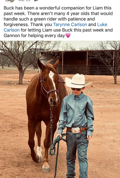 ⚜️ 𝓗𝓮𝓻𝓲𝓽𝓪𝓰𝓮 𝐖𝐢𝐧𝐭𝐞𝐫 𝓒𝓵𝓪𝓼𝓼𝓲𝓬⚜️ Happening now thru MONDAY | DECEMBER 29th - Available EXCLUSIVELY on HorseBid's website! For more details and to register visit: www.Horsebid.com CONSIGNOR CONTACT: C5 Arena - Luke Carlson 830-613-0465 LOCATION: Decorah, IA BREED: AQHA REGISTERED: Yes REGISTERED NAME: Smart Talkin Money COLOR: Sorrel HEIGHT: 14.3 AGE: 4 GENDER: Gelding Buck is a solid, well-built gelding standing 14.3 hands tall and weighs 1100 pounds at 4 years old. We have owned Buck since he was a weanling. He is a true barn favorite and seasoned rope horse with the heart, mind, and skills to do it all. He always meets you at the stall door and will walk up to you in the pasture to be pet and loved on. Buck is great in a herd or in a stall. He is soft in the face, one-hand neck rein, moves off leg pressure, stops hard, and rates cattle with ease. He is safe for all levels – confidence builder for beginners, but enough motor and athletic ability for experienced ropers. Buck is our goto horse for beginner riders as he is so patient and forgiving. Big time switch ender right here! Or he has the talent and ability to go in any direction. He is experienced on the head and heel side. He has been hauled and won on at jackpots! He stands quiet in the box and leaves off your hand. Buck is a horse that is very easy to rope on has all the speed you need. Buck is consistent and has a nice bend in the corner. He loads easily in the trailer and stands quietly tied. This horse is so special as he is athletic but has a gentle personality. Buck will do all aspects of ranch work like pushing, gathering, and sorting cattle. He will go wherever you point him, and is very quick to learn. He is confident and will cross fallen logs that are in front of him. He doesn’t hesitate to walk through water and goes through all types of terrain. This horse is the kind everyone gets along with – honest, kind-eyed, and always gives 100%. Buck is a solid, reliable, go-anywhere-do-anything type. We can’t say enough good things about this gelding. He has always been sound and healthy. Current on deworming, farrier, and coggins. Located in Decorah Iowa. FMI call Luke 830-613-0465.