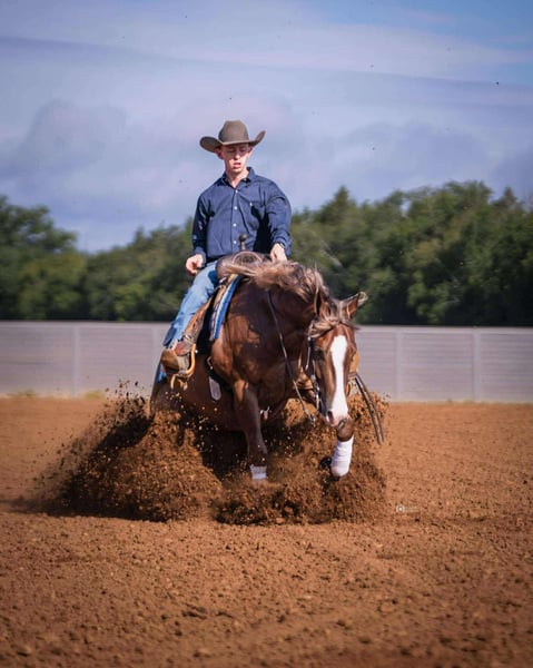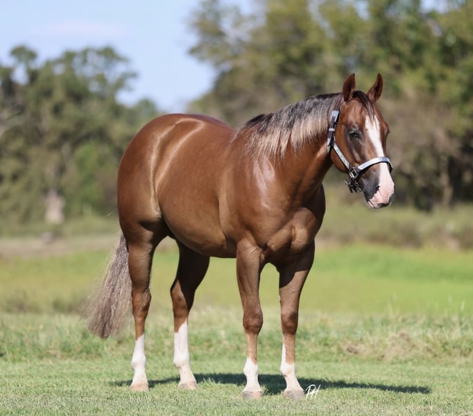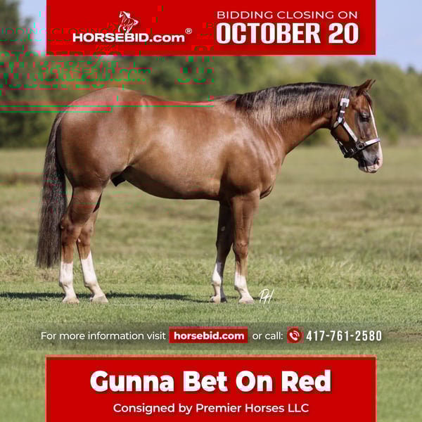 ♦️ 𝐭𝐡𝐞 𝐀𝐌𝐄𝐑𝐈𝐂𝐀𝐍 𝓕𝓪𝓵𝓵 𝓒𝓵𝓪𝓼𝓼𝓲𝓬 ♦️ Happening now thru MONDAY | OCTOBER 20th - Available EXCLUSIVELY on HorseBid's website! For more details and to register visit: www.Horsebid.com CONSIGNOR CONTACT: Premier Horses LLC 417-761-2580 LOCATION: Buffalo, MO BREED: Quarter Horse REGISTERED: Yes REGISTERED NAME: Gunna Bet On Red COLOR: Sorrel HEIGHT: 14.3 AGE: 4 GENDER: Gelding If you want to go first class, you are not going to want to miss out on Rocky! He is phenomenal in and out of the arena, just take him where your heart desires. You are going to look the part wherever you go riding him. He is a uniquely colored sorrel, perfect four white socks and a striking blaze, and highlights throughout his mane and tail. Conformationally he is flawless with a nice big hip, strong shoulder, and a babydoll head. Rocky is sired by none other than the infamous Gunnatrashya NRHA LTE: $236,457 and offspring earnings of $16 million+. His dam, Baby Red Gaylena is quite impressive, her offspring have earnings of $107,644+ and growing! Rocky does not lack in the talent department, he marks solid scores in the reining pen. He is a deep stopper, easy lead changer, circles great, and seamless spins. So fun and easy to show! Rocky is an NRHA money earner, he is ready to keep winning for you. He won the TNRHA Rocky Top Reining Novice Horse Open L1 with a score of 72. He got 3rd and 4th place TNRHA Rock N Roll Reining Class Taylor Automotive Open Futurity L2, L3, and L4: score 142.5. He also placed 13th at the 100X Reining Classic NARS Futurity Open L2: score 214. Rocky impresses the judges and consistent in the show pen. He would do great in the green and rookie classes as well! His pedigree and proven show record speak for themselves, but he has a great mind and that is hard to find. Rocky is patient, kind, and willing to please. Our 6 year old daughter easily pilots him, her favorite thing to do on him is the “slide stop,” as she calls it! He is also the most fun to take down the trails, confident in every stride. Rocky goes through water, up and down embankments, and treks through difficult terrain with ease. Go check the mail on him, he also goes over bridges and obstacles. He does not miss a beat and is a pleasure to be around. Rocky gets used to go sort and gather cattle as well, which he thoroughly enjoys! He does everything a person could want, but wrapped up into one package. If you want to go to the top, he can get you there. Rocky enjoys going down the trails, fun in the show pen, and just an overall pleasure to ride at home. Everyone needs a horse like this in their lives, so don’t miss out on this opportunity of a lifetime.