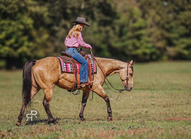 🎲𝓽𝓱𝓮 𝐑𝐈𝐃𝐄𝐑'𝐒 𝓒𝓱𝓸𝓲𝓬𝓮🎲 Happening now thru MONDAY | NOVEMBER 17th - Available EXCLUSIVELY on HorseBid's website! For more details and to register visit: www.Horsebid.com CONSIGNOR CONTACT: Double R Ranch Horses 931-623-1706 LOCATION: Lyles, TN BREED: Quarter Horse REGISTERED: Yes REGISTERED NAME: Flinging Lemons COLOR: Buckskin HEIGHT: 15.1 AGE: 5 GENDER: Gelding “Laredo” The Buckskin Everyone Loves! (And needs) If you’ve been searching for a safe, steady and easy to ride partner, the kind you can throw a saddle on any day of the week, point in any direction, and know you’re in good hands, meet Laredo. This golden dappled buckskin AQHA gelding is as easy on the eyes as he is steady in the saddle. He’s built right, and absolutely gorgeous- with a friendly, gentle personality that makes him so enjoyable to be around. Registered AQHA registered name “Flinging Lemons” with some impressive bloodlines, this 5 year old gelding stands 15.1 hands tall, has plenty of real-world experience, and a very good mind. Laredo is naturally friendly and loves attention, he is always ready to greet you at the gate. If you enjoy being around horses that are “in your pocket” you’ll love him. He has the kindest eyes and the sweetest soul, and he is ready to be your best bud. He’s quiet and patient on the ground, stands calmly to groom, saddle, and mount, and has excellent manners. Gentle and quiet, he loads, ties, bathes, and stands for the vet and farrier without fuss. He rides soft in the bridle, responds to leg cues, and is smooth and enjoyable. He has been trained to side pass over to pickup his rider on the mounting block as well, which is handy! Laredo has been a trusted trail partner with us. He’s safe, solid and has a good mind. He’s been my go-to choice when I need to pack a kid on board. He’s gone on overnight camping trips, where he crossed deep water, climbed steep rocky hills, and even explored miles of trails with our little one-year-old tucked in the baby carrier. He’s sure-footed, calm, and confident. New scenery doesn’t bother him, creeks, passing wildlife, or navigating through rough terrain, he handles it all with patience and a steady step. It’s easy to relax and enjoy the ride on a seasoned horse like him. You’ll feel at ease on his back! I’ve even hopped on him bareback in the dark and loped him off down the road, and he just calmly carries on like it’s nothing unusual for him. We have put him in about every situation you can think of, and he just proves himself rock solid again and again. He’s also been started on the head side, done a little bit of breakaway, lightly started on barrels, and used for ranch work including pasture roping, loading, doctoring etc. Laredo is versatile, well rounded, adaptable, and ready to succeed in whatever direction his next owner wants to take him. Even if that’s a best friend in horse form! It’s hard to find everything Laredo brings to the table- all in one horse. He has a To sum it all up, He’s just plain good. And in today’s world, that’s hard to find. Laredo passed his PPE by Equine Vet Todd Co Animal Clinic with flying colors! Located in Lyles, TN 📞 Contact Rachel Vick at 931-623-1706 to learn more or schedule a visit to meet Laredo in person.