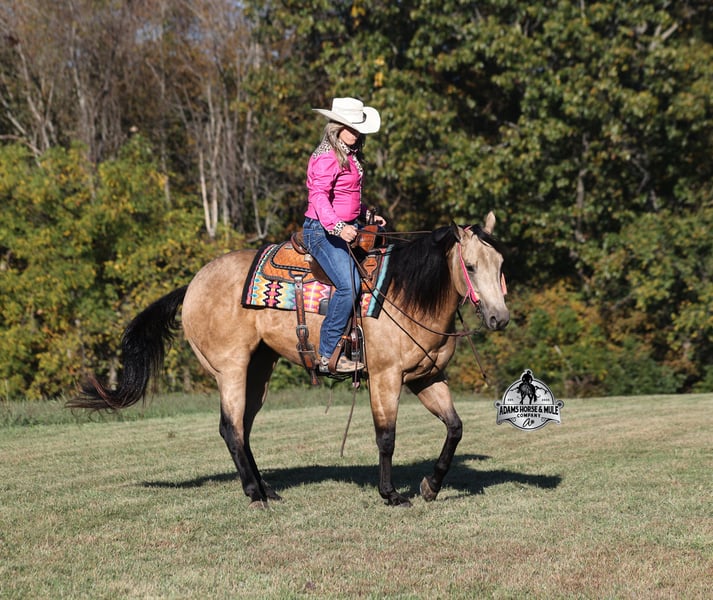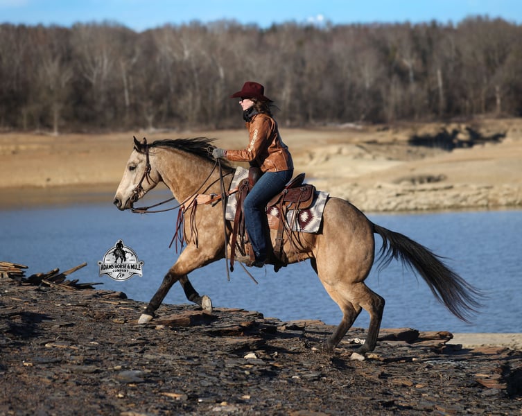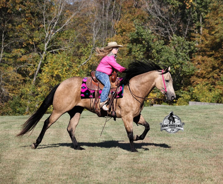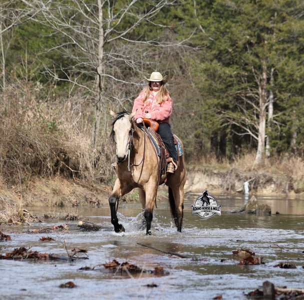He is consigned to the COWGIRL CADILLACS Sale in Wickenburg, AZ on February 20-21st. You can bid online or bid in person. There is a preview day before the sale or you can come ride him prior to the sale in Mt. Vernon, KY. Register to bid at www.CowgirlCadillacs.com More info at www.AdamsHorseAndMuleCo.com $10000 starting bid Smooth As Pendleton…a little bit of whiskey is said you calm your nerves and ease the tension, just making you more relaxed… there is not a more fitting name for this guy than Whiskey!!! As a 15.2h, 2021 Model with 11 AQHA points to his resume and over $6800 earnings, Whiskey is no stranger to the spotlight as he has been shown extensively and qualified in 2024 for the AQHA World Show in Ranch Trail (which is a ranch and trail obstacle course that involves cattle and log jumps). He rides low headed on a draped rein, lopes perfect circles, takes his leads, does flying lead changes, spins both ways, side passes, and has a good stop. To say the least he has all the moves and maneuvers that a person could dream of. Just as the pressure of the show pen doesn’t bother Whiskey neither does a roaring rodeo crowd of 3000 people, screaming and cheering as the speakers blare Kid Rock’s song “Born Free”, as he lopes around the arena carrying the flag at the grand entry. While at the rodeo Whiskey has been used to sort, pen and load rodeo bulls. The girls also used Whiskey to give “pony rides” on at 4 different rodeos. They had all ages of kids and adults stand in line for a ride on their horses. Obviously, Whiskey knows his way around the show pen and rodeo arena, but this pretty boy loves to get dirty out on the trails, packing the kids through the mud! Whiskey will build your confidence levels out on the trails and make a nervous beginner look like a seasoned pro! He has been trail ridden extensively in multiple states including, Iowa, Minnesota, South Dakota, Kentucky, Tennessee and North Carolina. Steep slopes, deep water, deadfall, boggy mud, all sorts of wildlife… nothing phases him, he is not spooky and he is a master on the trails! Whiskey will take care of his rider in any situation or terrain. Whiskey has been ridden around the ranch, he knows his way around cattle and has been roped off as well. He will hold what you tie to him and doesn’t get nerved up in a bad situation. Whiskey is not spooky and is accustomed to tarps, wind dancers, bull whips and gun fire. Whiskey has been ridden in English tack and will jump across the rails with ease. We have had him through town, the drive thru and he is traffic safe. Whiskey loves to take a bath, get soaped up, get his hair done up in braids and loves to spend time with the kids. If you are looking for a horse to show, a horse to trail ride, a horse to do ranch work on, a horse to jump and a horse to do lessons with… instead of buying six horses just buy the all in one and it will be smooth sailing the rest of the way because nothing is as Smooth As Pendleton!!! Whiskey is available to ride and see in Mt. Vernon, KY until the week of the sale Feb. 16-21. Call for more info or if you have any questions 606-308-2461. He is consigned to the COWGIRL CADILLACS Sale in Wickenburg, AZ on February 20-21st. You can bid online or bid in person. There is a preview day before the sale or you can come ride him prior to the sale in Mt. Vernon, KY. Go to visit our website for more pics and a video www.AdamsHorseAndMuleCo.com AHAMC has been in the horse business and sold horses over the internet since 2005. We have a long track record of success with hundreds of happy customers. We work hard to match riders with the correct horses and specialize in beginner safe, family friendly horses that have been used and checked out by our family! We can set up transportation anywhere in the US and look forward to working with you. Register to bid at www.CowgirlCadillacs.com More info at www.AdamsHorseAndMuleCo.com $10000 starting bid