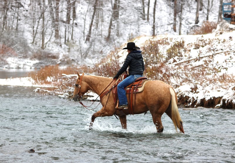 🎄𝐓𝐇𝐄 𝑯𝒐𝒍𝒊𝒅𝒂𝒚 𝐂𝐋𝐀𝐒𝐒𝐈𝐂🎄 Happening now thru MONDAY | DECEMBER 15th - Available EXCLUSIVELY on HorseBid's website! For more details and to register visit: www.Horsebid.com CONSIGNOR CONTACT: KS Horses 814-229-3290 LOCATION: Clarion, PA BREED: QH REGISTERED: Yes REGISTERED NAME: RJC Diamond Dude COLOR: Palomino HEIGHT: 15.2 AGE: 4 GENDER: Gelding RJC Diamond Dude is a Coming 5 Year Old Registered American Quarter Horse Gelding. Standing 15.2 hands tall. Wow Check Him Out!! Super Good Looking and Super Good Broke To Ride!! Very Quiet and Gentle! RJC Diamond Dude is the whole package and the kind of horse everyone is looking for and the kind of horse that is hard to find! RJC Diamond Dude is only 5 years old and has his whole life ahead of him. He is seasoned way beyond his years. He rides and acts like a horse twice his age. You will look long and hard to find a horse as broke and gentle as him. He has a super smooth trot, and super easy to sit rocking chair lope. Nice head set , neck rein and good stop. He is the same horse each and every time you ride him. Let him sit long periods of time without being ridden and he will stay quiet and gentle each and every time. He would be suitable for every member of the family to ride with how quiet and safe he is. He is great on the trails and goes anywhere you point him. He is traffic safe and good around four wheelers and bikes and farm equipment. He would make a great lesson horse. If your timid rider and need a confidence boost he would be the kind of horse that would help you regain your confidence. He could also be a ranch horse. The skys the limit for RJC Diamond Dude! He is the complete all around package! Dont miss out on this great opportunity to own such a cool horse! We can help arrange shipping anywhere in the United States. He had a Health and Lameness Exam on 12-1-25 which he passed everything. Feel Free to Call Kris at 814-229-3290. Thank You and God Bless!