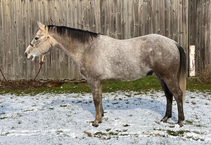 Sunny – potro de raza Quarter Horse de 5 años 🌟 Les presento a Sunny, un hermoso potro robusto y en camino a convertirse en gris, de aproximadamente 1,60 m de altura. Un auténtico imán con carácter propio, que disfruta de la variedad. A Sunny no le gustan las vueltas interminables en la pista de doma; prefiere paseos, trabajo en el suelo o entrenamiento de doma y doma natural en diferentes disciplinas. Le encanta la aventura. Es un compañero tranquilo y perfecto para paseos en la naturaleza, pasar tiempo al aire libre, ya sea montado o caminando, e incluso vacaciones conjuntas. Aún es joven y aprende rápidamente. Ha recibido formación básica en Western. Como él y yo no hemos conectado del todo, no ha sido entrenado de forma activa desde entonces. Por ello, aún tiene un gran potencial sin explotar, si se desea seguir desarrollándolo. Ya ha participado en algunos paseos de orientación. Sunny necesita un jinete que se adapte a su carácter, ya que a veces puede ser un poco testarudo y confiado en sí mismo. Requiere un jinete con ideas claras, confianza y un plan. Si se le puede ofrecer esto, será un compañero honesto y muy fiable para el ocio. La última foto muestra a Sunny cuando tenía unos días de edad, es decir, cuando nació como palomino. * Nivel de entrenamiento: Conoce la pista de doma, paseos en grupo y también disfruta de paseos en solitario. Es un compañero muy leal y confiable. * Temperamento: Tipo muy tranquilo, con muchas ganas de aprender. * Adecuado para: Jinete que busca un amigo para campo, que lo lleve a donde sea (paseos de aventura). No hay problema para cargarlo en remolque. También se porta bien con el herrador (actualmente en herradura). Totalmente seguro en el tráfico. Burros, tractores, camiones, autobuses, ovejas, etc., nada le asusta. Disponemos de radiografías. No presenta cojera y está clínicamente en perfectas condiciones. Se busca un hogar en un entorno de 5 estrellas, con compañía y preferiblemente con acceso diario a pasto.