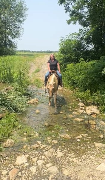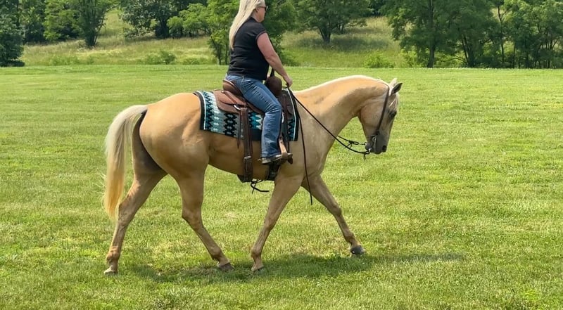 ⚜️ 𝓽𝓱𝓮 𝐇𝐨𝐫𝐬𝐞𝐦𝐚𝐧'𝐬 𝓢𝓱𝓸𝔀𝓬𝓪𝓼𝓮⚜️ Happening now thru MONDAY | DECEMBER 1st - Available EXCLUSIVELY on HorseBid's website! For more details and to register visit: www.Horsebid.com CONSIGNOR CONTACT: Tasha Ijames 270-844-2400 LOCATION: Henderson KY BREED: Quarter Horse REGISTERED: Yes REGISTERED NAME: RWS Rapid Dry 221 COLOR: Palomino HEIGHT: 15.3 AGE: 5 GENDER: Gelding Peanut AQHA 2020 RWS RAPID DRY 221 Peanut is a gorgeous 5 year old palomino gelding standing 15.3 hands tall. Peanut isn't just an eye catcher he is very broke and rides like one should. He will W/T/L, side pass and works off leg pressure. Peanut will walk all day if asked. He has a nice slow trot to him and transitions to a nice smooth lope. Peanut changes leads, circles with speed control and has a beautiful extended trot that would be ideal for the ranch riding! He neck reins with one hand or you can ride him two handed, responsive to leg cues, backs and has a big stop when asked. He is out standing on the trails and has been trail ridden through many different types of terrain. He is sure footed and honest. Peanut will cross creeks, go through any body type of water, thick brush, logs, bridges, rough terrain, up and down cliffs with ease and has been through all the obstacles. He has been rode on the road and is use to all kinds of traffic, heavy machinery and ATV’s. You can ride Peanut out alone with ease or with other horses. Peanut is young enough to go any direction you want. He is eager to learn. Peanut will stand still for you to get on him from the ground or a mounting block. He stands to be groomed, fly spray, stands still to be saddled, takes the bridle with ease, bathes good, loads like a dream, clips great, and stands for the farrier. We invite anyone and everyone to come meet and ride Peanut at our barn in Henderson, Kentucky. We are happy to assist with transportation arrangements. For any questions about Peanut please contact Tasha 270-844-2400