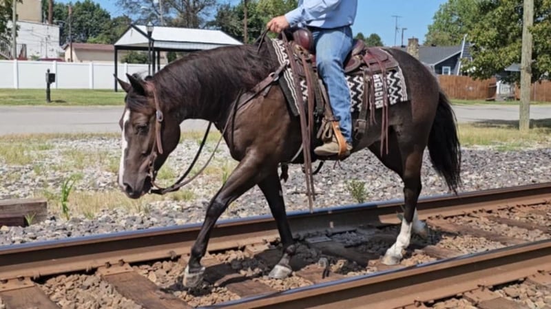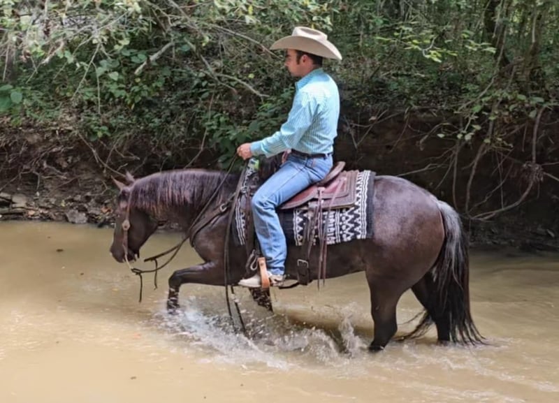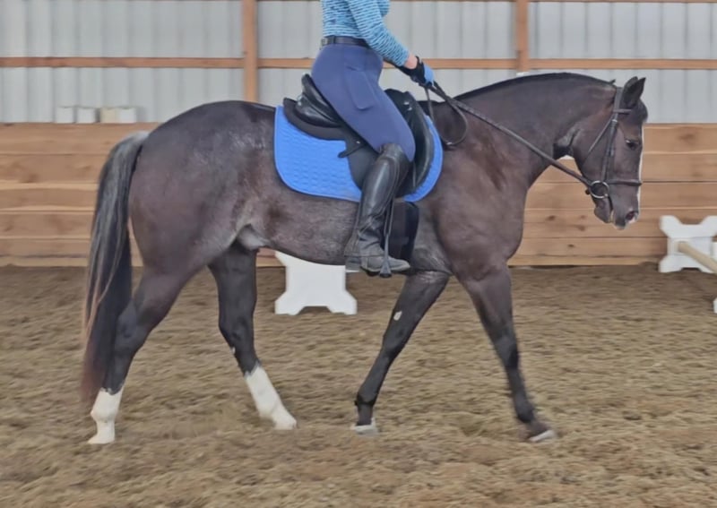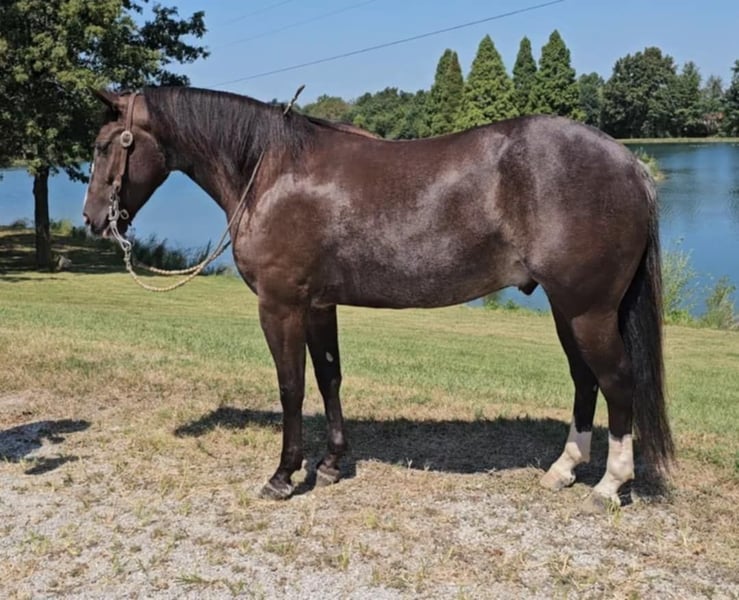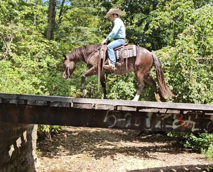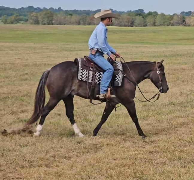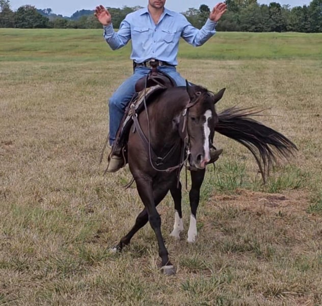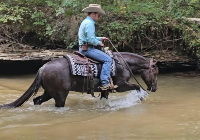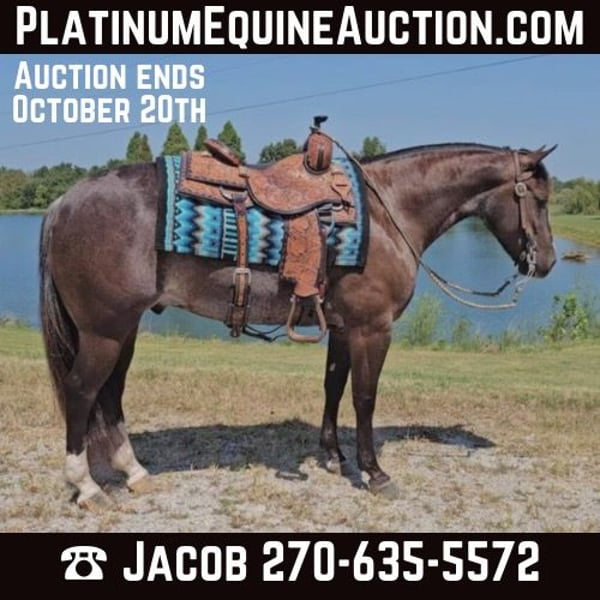 ONLINE AUCTION Place your bids at www.PlatinumEquineAuction.com Starting Bid $3500 Auction ends October 20th, 2024 Need a new saddle? Check out White Rock Saddles on our website or Facebook! Class, style, color, and confirmation all in one package. Popeye is truly a one in a million. Standing 14 hands tall, 4 years old, with flawless conformation and the unique color of a rabicano black. Popeye has been in my training program for the past year. He is now ready to find his perfect life partner. Popeye has impeccable ground manners. He stands perfectly for tacking, bathing, clipping, and for the farrier. Popeye will load on any kind of trailer, with the point of a finger. Popeye has an excellent reining foundation with beautiful lead departures, roll backs, and perfect spins. He is also progressing very well with flying lead changes. He is no stranger to a hard day’s work on the ranch. Popeye has been used to pony colts, sorted cattle in the working pen, and has tracked breakaway steers in the alley. Popeye has been on numerous week long camping trips, with many hours of trail riding, packing saddlebags, and being ridden double. He has been ridden in town several times and has no fear of semi trucks or car passing. Popeye is ready for any career path you choose for him. He would excel in ranch riding, heeling, calf roping, breakaway, or English events. Or simply enjoy taking him on relaxing trail rides and camping trips. Popeye sells 100 percent sound in every way. Be sure to check out his video. Contact Pleasant Valley Equine Jacob 270-635-5572 Located in Robarts, KY. ONLINE AUCTION Place your bids at www.PlatinumEquineAuction.com Starting Bid $3500 Auction ends October 20th, 2024 Need a new saddle? Check out White Rock Saddles on our website or Facebook!