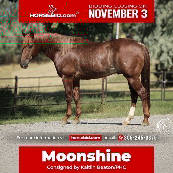 ⚜️𝐓𝐇𝐄 𝐅𝐀𝐋𝐋 𝐇𝐄𝐑𝐈𝐓𝐀𝐆𝐄 𝐂𝐋𝐀𝐒𝐒𝐈𝐂⚜️ Happening now thru MONDAY | NOVEMBER 3rd - Available EXCLUSIVELY on HorseBid's website! For more details and to register visit: www.Horsebid.com CONSIGNOR CONTACT: Kaitlin Beaton/PHC 805-245-0375 LOCATION: Billings MT BREED: Quarter Horse REGISTERED: Yes REGISTERED NAME: Starshinne COLOR: Chestnut rabicano HEIGHT: 14.3 AGE: 6 GENDER: Gelding Introducing “Starshinne” or as we call him in the barn, Moonshine! Moonshine is a 14.3 hand 6 year old gelding that always turns heads whether you are showing him or just going for a trail ride with your friends! No buddy sourness to this guy, He has no problem enjoying a solo ride or going off in a group, and he walks right through water no problem. This beautiful boy is a fully trained reined cowhorse and is ready to go show! If that’s not your cup of tea he could also excel in ranch riding, go in the team roping direction, breakaway roping, or just be your best bud! Moonshine greets every new task with ears up and a great attitude and truly doesn’t have a sassy bone in his body. He is not complicated to ride, show, or just have around! He is the same on a Monday as he is on a Friday and he never gets worked up or frazzled. Talk about gentle, gentle, gentle and a real puppy dog! Feel like showing off for your friends? Take his bridle off and take him for a spin (literally). Moonshine has one of the best personalities I’ve ever seen in a horse and truly is a sweetheart. He will nicker at you when you come in the barn, follow you around the arena, and wants to be your best friend! He stands perfect for the farrier and hops right in any trailer. Moonshine is an easy keeper with no maintenance. Up to date on worming, dental, farrier, and coggins. Truly sad to see him go but I know he will be someone’s forever horse. If you have any further questions about Moonshine feel free to reach out! Located in Billings, Montana Kaitlin Beaton (805) 245-0375 Jann Parker (406) 855-1947