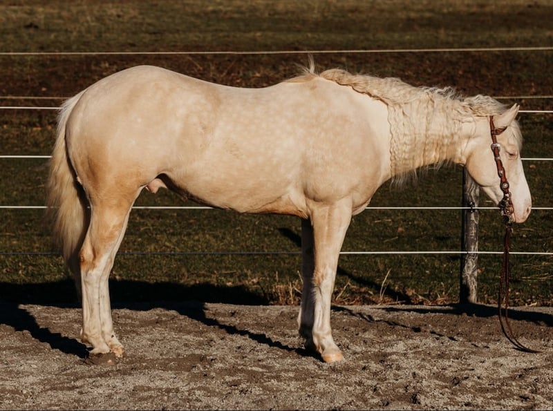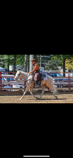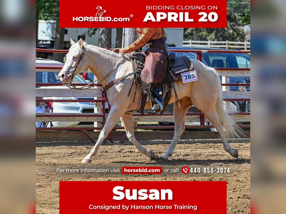 ⚜️𝐭𝐡𝐞 𝓔𝓵𝓲𝓽𝓮 𝐒𝐩𝐫𝐢𝐧𝐠 𝐂𝐥𝐚𝐬𝐬𝐢𝐜⚜️ Happening now thru MONDAY | APRIL 20th - Available EXCLUSIVELY on HorseBid's website! For more details and to register visit: www.Horsebid.com CONSIGNOR CONTACT: Hanson Horse Training 440-858-3074 LOCATION: Andover, OH BREED: Quarter Horse REGISTERED: Yes REGISTERED NAME: BH A Boy Named Sue COLOR: Cremello/light palomino HEIGHT: 14.3 AGE: 6 GENDER: Gelding 2020 AQHA Cremello Gelding 14.3hh https://youtu.be/KE4Tl6Z6HuA?feature=shared Yes, this gelding’s name is Susan. His registered name is “A boy named Sue” Susan is the name that always stuck with him since he was born. I raised this gelding from a foal. He stands 14.3hh. His mother is one of my all-time favorite mares and his sire is the great and late “Big Chex to Cash.” He has been my favorite foal since day one. Susan has a very well-rounded education; having been used for a lot of my intermediate lessons, hauled out for trail rides, shown in a lot of ranch shows. I even showed him at the All-American Quarter Horse Congress in 2025 with my broken ribs and a punctured lung. He took great care of me, piloting through the ranch trail and ranch riding classes. He is a phenomenal prospect to be a high-end ranch performance horse or any other discipline you choose. With his beautiful gaits, he could even excel as an all-around show horse. Susan is a beautiful mover, and one of the prettiest horses. He’s an absolute joy to ride, he’s very trainable and kind, and has smooth, lovely gaits. Susan has never had any injections or maintenance of any kind; and has never been unsound. I’ve very proud to offer this quality gelding and looking forward to seeing where his future takes him. He has a lot of quality professional training and has so much to offer his new owners. This will be a hard one for me to let go as a breeder and trainer, but it’s time for him to excel in his new home. He sells with a certificate of soundness and vaccinations. I also have x-rays available and can email them to anyone interested! If you would like to know more about him or come try him, call 440-858-3074. PPE very welcomed at buyer’s expense *Susan is a light cribber controlled with a collar*