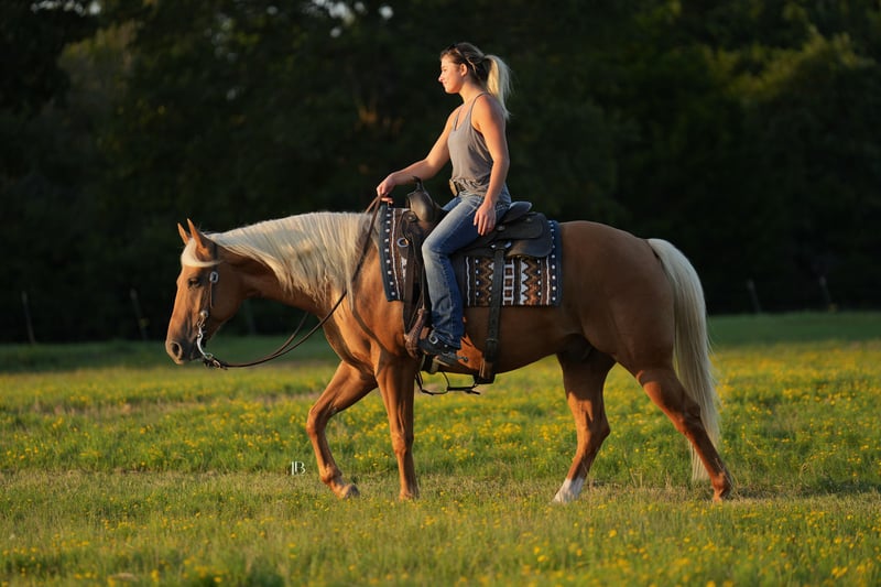 🍂 𝓐𝓾𝓽𝓾𝓶𝓷 𝑨𝑳𝑳 𝑺𝑻𝑨𝑹 𝑳𝑰𝑵𝑬𝑼𝑷 🍂 Happening now thru MONDAY | OCTOBER 6th - Available EXCLUSIVELY on HorseBid's website! For more details and to register visit: www.Horsebid.com CONSIGNOR CONTACT: LB Equine Sales, LLC 214-449-8028 LOCATION: Terrell, TX BREED: AQHA REGISTERED: Yes REGISTERED NAME: Yellowstones Delight COLOR: Palomino HEIGHT: 14.3 AGE: 5 GENDER: Gelding "Meet Charlie – the golden palomino gelding everyone dreams of owning. Charlie checks all the boxes: a friendly, easy-going personality, a quiet and sensible brain, eye-catching good looks, and the perfect size. Whether you’re searching for a safe and steady weekend trail partner, your palomino dream horse, or a versatile show prospect, Charlie is the complete package. This gorgeous gelding is elegant across the ground, consistent in cadence and pace, and eye catching wherever he goes. We’ve had Charlie in our program since May, and he has quickly become our go-to mount for guests and riders of all levels down the trail and in the arena. He has been a great confidence builder down the trail—steady, quiet, and happy to head out on any adventure. Traffic, trains, four-wheelers, cattle, strollers, gunfire, flags—you name it, he takes it in stride. Never worried or fazed by things – he is even forgiving of rider mistake, he stands tied patiently, loads and hauls with ease, and settles right in at new places. He is not easily spooked (as seen in the videos) and can really put up with a lot of commotion! Charlie has been ridden in town, through the Sonic drive-thru, at covered arenas, and across all kinds of terrain. He crosses water, steps carefully over logs, navigates bridges and ravines, and goes out alone or in a group without hesitation. Lead, follow, or fall in the middle—Charlie is content wherever you put him. He’ll happily plod along on a loose rein and wants to be low-headed and relaxed. In the arena, Charlie shows tremendous potential as an all-around show horse. His hack-winning trot and rhythmic canter make him a standout. He’s soft in the bridle, stops off your seat, pivots easily, and carries himself in a beautiful frame. Gentle yet willing, he has the “ready to work” attitude without ever being hot. He could easily shine as a hunter, ranch rider, or all-around mount for anyone. He’s also been used to drag logs, carry flags, had guns shot off him, and ponied other horses—always honest and dependable with any task granted to him. Off property he is a trailer to ring/trail type of ride! He is BRAVE over fences and has a lot of try. Beyond his training, Charlie is a joy to be around. He has a goofy, playful side that makes him easy to love, and his sweet temperament speaks for itself. He wants to be very personable and in your pocket. Prior to joining us, he was a trusted family horse, toted around by little boys—a true testament to his gentle nature. Those boys climbed all over him! He’s excellent to handle, good in a stall, easy to catch (he’ll walk right up and stick his face in the halter), and gets along well in turnout. He can be kept barefoot or shod—sound and sane either way. Up-to-date vet work including coggins, vaccines, dental float, and deworming (all available on our website). Clean radiographs on file to view, along with a recent PPE report – 100% sound. Don’t miss this once-in-a-lifetime gelding—Charlie is the kind everyone wants! He wants to be your favorite buddy and pal. Transportation can be arranged anywhere.