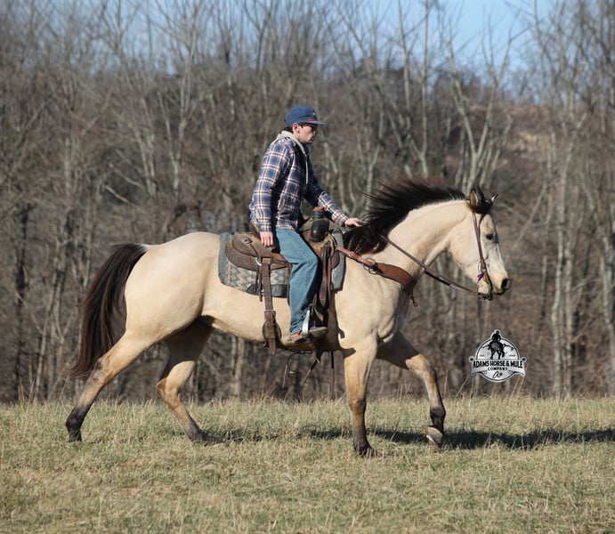 𝐀𝐝𝐚𝐦'𝐬 𝐇𝐨𝐫𝐬𝐞 & 𝐌𝐮𝐥𝐞 𝐂𝐨𝐦𝐩𝐚𝐧𝐲'𝐬 ✷𝑬𝒗𝒆𝒓𝒚 𝑴𝒊𝒍𝒆 𝑨 𝑴𝒆𝒎𝒐𝒓𝒚✷ 𝐄𝐗𝐂𝐋𝐔𝐒𝐈𝐕𝐄 𝐒𝐀𝐋𝐄 Happening now thru MONDAY | FEBRUARY 2nd - Available EXCLUSIVELY on HorseBid's website! For more details and to register visit: www.Horsebid.com CONSIGNOR CONTACT: Adams Horse and Mule Company 606-308-2461 LOCATION: Mt. Vernon, KY BREED: AQHA REGISTERED: Yes REGISTERED NAME: BQH WInters Moon COLOR: Buckskin HEIGHT: 15.3 AGE: 6 GENDER: Gelding BQH Winters Moon is a magnificent looking 15.3H+, STOUT BUILT, Buttermilk Buckskin, gelding. He is registered in the AQHA and is a 2020 model, with a pedigree going back to Two Eyed Red Buck. Winter has been ridden around the ranch, checked cows and rode fences. He is a slow and laid back type of horse that will just ease along down the trails with no hesitation. When out on the ranch or going down the trails he will cross creeks, ditches, logs and navigate rough rocky areas. He very friendly and is a horse that the whole family will love! He is safe in traffic, whether that be trucks or cars. He lopes nice circles, reins around and has a good stop. He is big, beautiful and buckskin... what more could a person ask for? Feel free to call Eric 606-308-2461 with any questions!