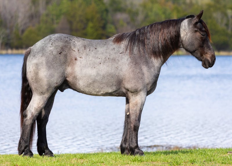 ONLINE AUCTION Place your bids at www.PlatinumEquineAuction.com Starting Bid $3500 Auction ends May 11th, 2025 Need a new saddle? Check out White Rock Saddles on our website or Facebook! This beautiful Blue Roan gelding may just be the best draft cross we have ever had through our program! Ernie is a 16hh, 5 year old with all black points and he is one sharp looking guy! He is a barn favorite here and sure to be a barn favorite in your barn. Gorgeous color with an exceptional personality and rides like an old soul. This is the type of horse for your grandma, children and anyone looking for a super honest/bombproof ride. Easy to catch. Ernie stands tied for saddling, grooming, and at the mounting block. Super pushbutton ride! If you can sit on top of him you can ride him. Absolutely no funny business and comes out to work every day you ask. Leave him sit for weeks he will be the same quiet easy going horse. Exceptional trail horse, nothing rattles him. Lead the pack or stay in the back he does not care. Easy gaits and rides on a loose rein. Started over fences and very willing. All around gelding for the entire family to enjoy. Has been in the program and Beaver Ranch and stand behind him 150%. Check out our video highlighting everything from saddling, loading, trail riding, obstacles, jumping and Walk, Jog, Lope. Sells with UTD basic PPE, Coggins, Health Papers, Vaccinations, Dentist, Farrier. We HIGHLY encourage customers to come try our horses in person before buying to ensure an excellent fit between horse and rider. We are so confident that you will love our horses that we will personally cover all travel and lodging expenses for the winning bidder if they come try before they buy/bid. While here you are welcome to try our horse any where/way that you like, on the trails, out on the ranch, in the arena or working cattle. Anyone who comes to try out horses in person will receive a 5 day money back guarantee from time the horse arrives in your possession. Also included will be the option to receive a 1 hour riding lesson with Beaver Ranch to better learn how to communicate with your new horse. NOW AVAILABLE!- Facetime/Skype video call meet and greet with Ernie. Anything from handling/saddling to riding can be accommodated subject to availability. For more information on Ernie or to schedule a time to visit Ernie please contact Beaver Ranch Mike 410-490-7384 or Lindsey 443-786-5611. ONLINE AUCTION Place your bids at www.PlatinumEquineAuction.com Starting Bid $3500 Auction ends May 11th, 2025 Need a new saddle? Check out White Rock Saddles on our website or Facebook!