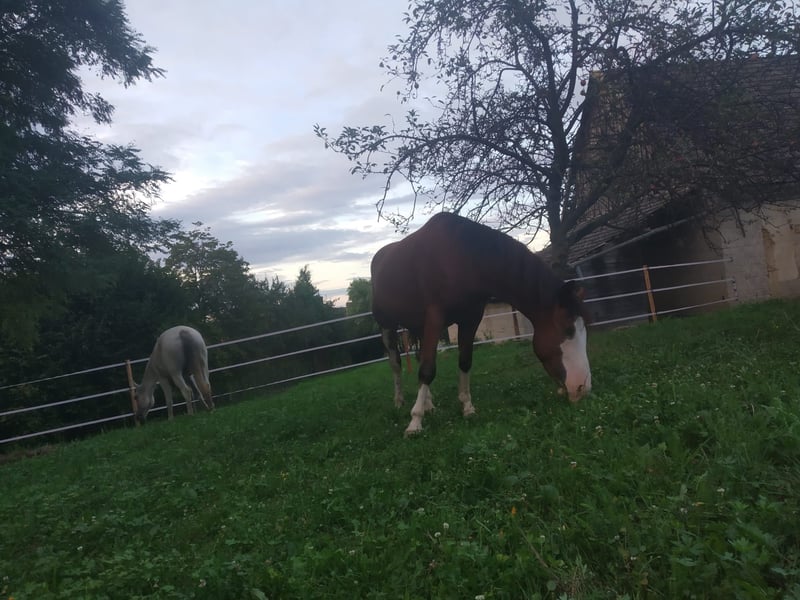For sale is our handsome Italian gelding, "Toni" – perfect for leisure riding! We are offering our clever gelding "Toni," born in 2019. Standing at 14.2 hands, he is the ideal companion for anyone seeking a reliable and friendly leisure horse. Toni is characterized by calmness, intelligence, and a willingness to learn. He makes a pleasant leisure horse and is perfect for trail riding and light exercises in the arena. He particularly enjoys brain teasers and groundwork. Toni is looking for a confident owner who has time for him regularly and can challenge and support him! He is affectionate, never malicious, and always needs leadership, as otherwise he tends to entertain himself 😀. He is ready for new adventures and looks forward to a loving and responsible owner. If you are interested or would like more information, please do not hesitate to contact me. Come see for yourself what a wonderful leisure partner he is!