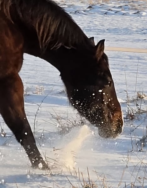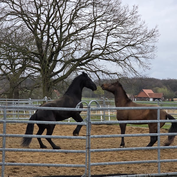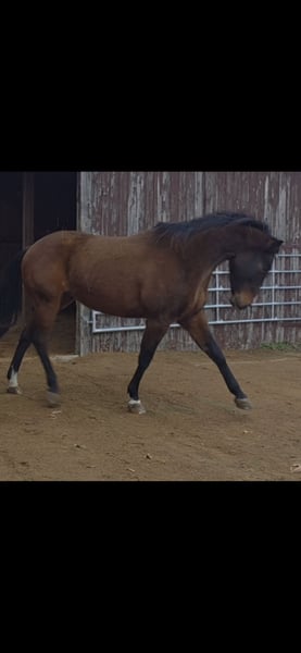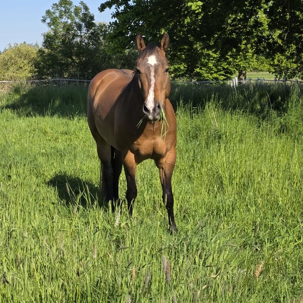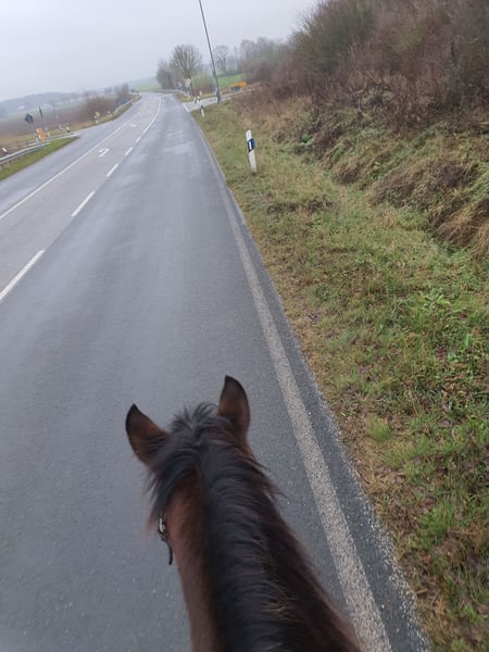 Ich suche für meinen Wallach, nach viel Hin und Her und doch noch mal versuchen, ein neues Zuhause. Durch immer wiederkehrendes Stolpern, habe ich letzten Herbst mein Pferd -zum 2ten mal in einer klinik auf den kopf stellen lassen (klinik 1 war leider eher inkompeten) Resultat: ein Befund an der Hufrolle, mein Wallach ist aber lt Klinik als Freizeitoferd nutzbar. Er soll nur nicht auf Tuniere gehen und permanent in der Halle geritten werden. Für einen Freizeitreiter, der gerne ins Gelände geht, dort einen zuverlässigen Partner sucht und Wert aud eine top Basisausbildung legt- Jackpot Leider bin ich aber ein absoluter Schönwetter Reiter und kann ihm dauerhaft nicht das bieten, was er braucht. Mittlerweile zeigt sich sehr deutlich, wie unzufrieden wir beide mit der Situation sind. Ich habe es nun sehr lange versucht und muss mir eingestehen, das er mit mal "ab und zu" im Sonnenschein ausreiten, erwas Bodenarbeit und toben mit seinem Kumpel überhaupt nicht ausgelastet ist. Beim Ausreiten kennt er es sowohl alleine,als auch mit fremden Pferden unterwegs zu sein. Verladen klappt alleine problemlos und die Bremse ist absolut zuverlässig. Er hat einen sehr fleißige Schritt, lässt sich aus jeder Gangart regulieren und kennt jegliche Form von Auto,PKW oder LKW (wir müssen immer an stark befahrene Landstraßen entlang). Ich wünsche mir für ihn einen Menschen der wirklich vorrangig ins Gelönde möchte und eher weniger Interesse an viel Platzarbeit hat (angemessen natürlich möglich und kann er auch einges) ebenso mag er die Bodenarbeit. Einparken, spanischer Schritt an der Hand und unterm Reiter usw. Ich reite ihn im Bosal, aber er kennt auch das Gebiss (stange) Wichtig wäre für ihn eine Unterbringung mit pferdiger Gesellschaft, da er unbedingt Spielpartner möchte. In der Herde ist er mittig anzusehen. Box kennt er nicht und soll auch so bleiben Ein hochwertiger Wadesattel und maßgefertigtes Bosal könnte ebenfalls erworben werden, sind aber nicht inkludiert Bei uns bekommen die Pferde 24/7 Heulage und er verträgt auch 24/7 Weide (Auf Heu hat unser Bestand vor 3 j empfindlich reagiert, inwieweit das bei ihm noch so ist, kann ich nicht sagen) Aufgrund des oben genannten Befundes, weit unter Wert Preis bei Bestplatz VB
