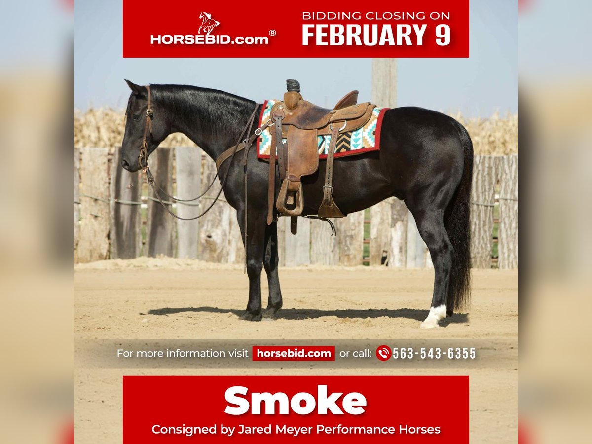 ❤️🔥𝑩𝒆 𝑴𝒊𝒏𝒆 𝐒𝐄𝐋𝐄𝐂𝐓❤️🔥 Happening now thru MONDAY | FEBRUARY 9th - Available EXCLUSIVELY on HorseBid's website! For more details and to register visit: www.Horsebid.com CONSIGNOR CONTACT: Jared Meyer Performance Horses 563-543-6355 LOCATION: Bernard, IA BREED: AQHA REGISTERED: Yes REGISTERED NAME: Lemmons Northbound COLOR: Black HEIGHT: 15 AGE: 7 GENDER: Gelding If you’re looking for a black gelding with all the cowboy extras, take a hard look at Smoke. He’s a 2019 AQHA gelding standing 15 hands, built right, and bred for performance with Peptoboonsmal on his top side. He’s sharp-looking, strong, and athletic, the kind that turns heads saddled up and tied to the trailer. Smoke has been used on the ranch and knows what a real day’s work looks like. He’s crossed every obstacle in his path, from water to downed timber, and he’s the kind you can trust to get you where you’re going. He’s also been in the thick of it, catching wild cattle outside, proving he’s got the grit and cow sense needed for serious ranch work. In the arena, Smoke has been slowly and correctly started as a head horse. He’s showing promise with ease of movement, plenty of run, and the kind of presence that makes you want to swing a leg over him. With his foundation, good looks, and ability, Smoke is the kind of horse that working cowboys and ropers look for—the real deal that’s ready to go on with in any direction. 100% Sound, Safe and Gentle Questions or to schedule a time to see this horse, contact Jared Meyer at 563-543-6355. Visit jaredmeyerperformancehorses.com for more information.