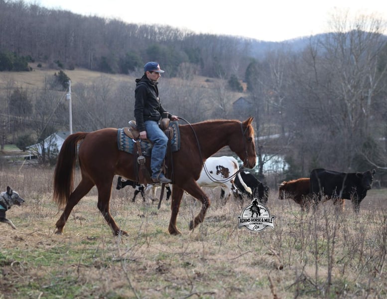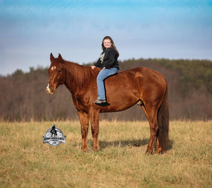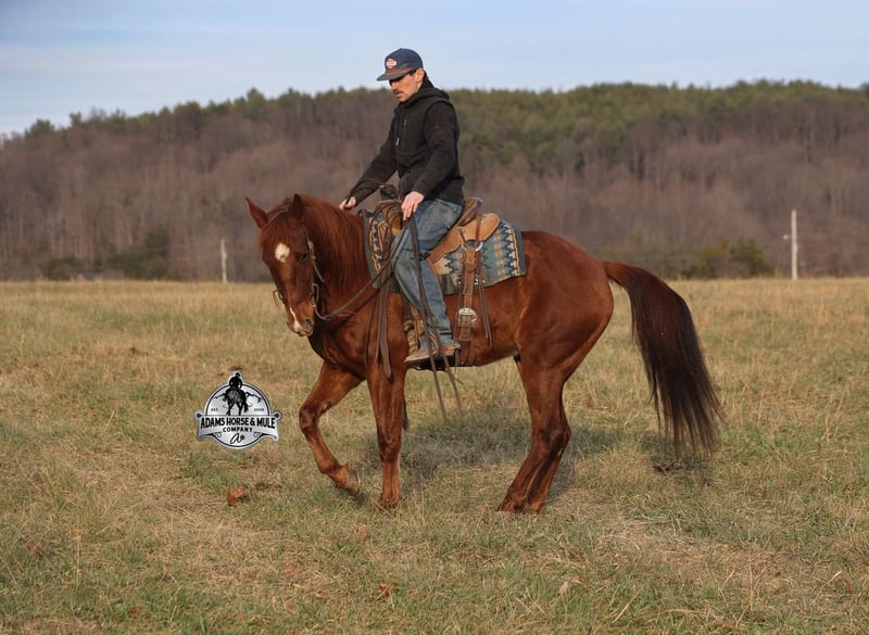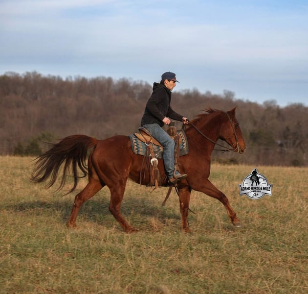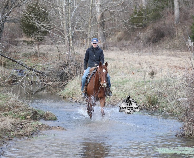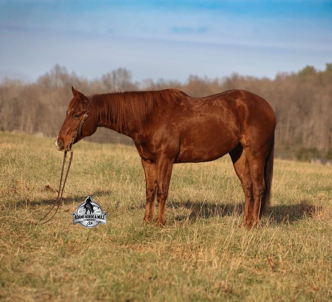 𝐀𝐝𝐚𝐦'𝐬 𝐇𝐨𝐫𝐬𝐞 & 𝐌𝐮𝐥𝐞 𝐂𝐨𝐦𝐩𝐚𝐧𝐲'𝐬 ✷𝑬𝒗𝒆𝒓𝒚 𝑴𝒊𝒍𝒆 𝑨 𝑴𝒆𝒎𝒐𝒓𝒚✷ 𝐄𝐗𝐂𝐋𝐔𝐒𝐈𝐕𝐄 𝐒𝐀𝐋𝐄 Happening now thru MONDAY | FEBRUARY 2nd - Available EXCLUSIVELY on HorseBid's website! For more details and to register visit: www.Horsebid.com CONSIGNOR CONTACT: Adams Horse and Mule Company 606-308-2461 LOCATION: Mt. Vernon, KY BREED: AQHA REGISTERED: Yes REGISTERED NAME: Uptown Twisted Drift COLOR: Chestnut HEIGHT: 15 AGE: 7 GENDER: Gelding When you walk onto a car lot everyone sees the fancy shiny Lincoln, Tesla or Cadillac setting at the entrance... but not everyone sees the muddy 4x4 setting around back that will get the job done, is a lot easier to operate and will start with no issues when its below 0 degrees!!! Uptown Twisted Drift aka Twister is that 4x4! He is reliable, always easy to ride, does any job that is asked of him and he still has all of the buttons! Twister is a chestnut Registered Quarter Horse Gelding that is a 2019 Model. Twister is a well traveled horse that has been ridden in many states from Oregon to Montana and Texas to Kentucky. He knows all about the ranch life, from herding to sorting, pasture roping, riding the feedyard… he has done it all! If your confidence is low and needs a boost, he is the one for you! He is great in the trails and has been in the high country that is very rough and rocky. He will cross creeks, ditches, logs and navigate rough rocky areas. He will go up or down even the steepest slopes, across deep creeks, over downed trees, and over all types of rough terrain while still being sure footed. Twister has a smooth jog and a very smooth lope! He takes the correct leads, lopes nice circles, is one hand broke and reins around with ease. Twister has been ridden by our kids and is safe for the whole family! If you are over buying a flashy colored horse and now want one that is reliable and safe... Twister is the one for you! If you have any questions call Eric 606-308-2461.