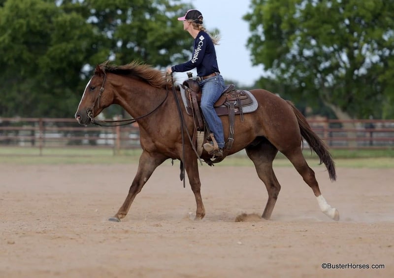 ONLINE AUCTION Place your bids at www.PlatinumEquineAuction.com Starting Bid $3500 Auction ends July 28th, 2024 Need a new saddle? Check out White Rock Saddles on our website or Facebook! “Nash” – 15H, 6 year old sorrel roan grade quarter horse gelding. Nash is a solid using horse. We have loaded him out several times to check fences and day work on when someone was short a horse, and he has been used many many horses in the turnback pen. He is pretty marked and has that classic using quart horse look. He rides outside just as well alone as he does with others, is used to going out alone and has probably been out more alone than he has been with others. He lives out in a big group of geldings, and has also stayed relaxed and happy when kept in the stall barn. He is easy to saddle and bridle, stands tied, gentle to groom and loves a bath. He hops right on the trailer and will stand tied quietly all day anywhere that you tie him up. Not remotely horsey / herd bound or barn sour, he enjoys having a job and going to work. Nash was just shod this two weeks ago, his teeth were also done by an equine dentist this spring, and he had his sheath cleaned, his ears treated for ticks, and he was also power packed wormed. He is good to shoe, has great feet and also goes well barefoot – if his new owner prefers him to be barefoot, we can have his shoes pulled and trim him prior to him heading to his new home. He will arrive at his new home up-to-date and ready to go to work! We are experienced, knowledgeable sellers, and we can help with quickly arranging affordable shipping to any buyer’s location – we have experience shipping worldwide – including regularly to Hawaii, Canada, Mexico, Europe, and South Africa. Please call Buster Horses Ashley at 214-605-7174 and please visit BusterHorses.com for lots of additional videos, and pictures. ONLINE AUCTION Place your bids at www.PlatinumEquineAuction.com Starting Bid $3500 Auction ends July 28th, 2024 Need a new saddle? Check out White Rock Saddles on our website or Facebook!