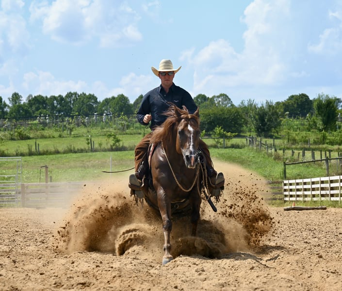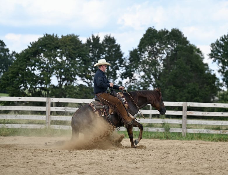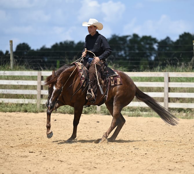 ⭐️ 𝐀𝐔𝐆𝐔𝐒𝐓 All-Star Lineup ⭐️ Jetzt bis MONTAG, 25. August – exklusiv auf der Website von HorseBid verfügbar! Für weitere Informationen und zur Anmeldung besuchen Sie bitte: www.Horsebid.com VERKÄUFERKONTAKT: Diamond K, 330-231-2311 STANDORT: Jackson, Ohio RASSE: AQHA EINGETRAGEN: Ja NAME: MR Electric Whiz FARBE: Fuchs HÖHE: ca. 15,1 hh ALTER: 7 Jahre Geschlecht: Wallach Lernen Sie Homer kennen, wie wir ihn im Stall nennen – ein eingetragener AQHA-Wallach aus dem Jahr 2018, der 15,1 hh groß ist und ein sehr hübscher, rotbrauner Dabble-Chestnut ist! Wir hatten das Vergnügen, ihn durch unser Programm zu führen und dabei zu beobachten, wie er sich in vielen Bereichen bewährt hat. Homer kam aus einem sehr angesehenen Reining-Programm in Texas, bevor wir ihn gekauft haben, wo er alle anspruchsvollen Reining-Manöver erlernt hat. Seit über einem Jahr ist er bei Diamond K und wurde in vielfältiger Weise eingesetzt – weit über seine Reining-Fähigkeiten hinaus! Homer wäre ein ausgezeichneter Reiner für Einsteiger im Amateurbereich, der in den Sport einsteigen möchte, oder er kann als Ranch-Rider, zuverlässiger Trailpartner oder als Top-Ranch-Horse für Rinderarbeit und Roping genutzt werden – und liebt es! Beginnend mit den Arena-Manövern zeigt Homer einen sehr großen und gleichmäßigen Slide Stop, der es jedem Reiter leicht macht, ihn zu kontrollieren und bei jedem Stop „Whoaa“ zu sagen. Sein Stop ist kraftvoll, aber auch sehr weich und leicht in den Wechseln der Führlinien – ideal für Reiter, die das Führungswechseln lernen. Homer wurde auch häufig auf unserer Farm für Anfänger eingesetzt, die gerade erst das Führungswechseln oder Stoppen üben, weil er so zuverlässig und einfach zu reiten ist. Er hat außerdem eine sehr solide, gleichmäßige Drehung, ist ein „Point-and-Shoot“-Pferd für seine Reining-Manöver. Seine bereits beeindruckende, konstante Showbilanz im Amateurbereich macht ihn zu einem perfekten Pferd für jemanden, der in den Reining-Sport einsteigen möchte. Kommen wir zum Ranch Riding! Wir sind der Meinung, dass Homer auch das perfekte Pferd für Einsteiger in die wachsenden Ranch-Riding-Klassen ist. Er zeigt einen schönen, ausgedehnten Trab, geschmeidige Übergänge und liebt die Ranch-Trail-Parcours! Von Pattern- bis Trail-Klassen erfüllt er alle Anforderungen mühelos und ist für den Sport bestens geeignet. Besonders seine einfache Wendigkeit, Führungswechsel und Übergänge machen ihn zu einem echten Vorteil in den Ranch-Klassen. Und was die Ranch-Arbeit betrifft: Homer hat im vergangenen Jahr viel Zeit mit Rinderarbeit verbracht. Er ist sehr cow-sense und kann eine Kuh perfekt verfolgen und bewerten. Er ist eines der einfachsten Pferde zum Roping – er hat bereits zahlreiche Rinder im Weideland eingefangen und zum Tierarzt gebracht. Sobald die Rinder gefangen sind, arbeitet Homer ruhig am Seil und hält es straff, während Sie die Rinder behandeln – das macht ihn zum ultimativen Ranch-Horse. Außerdem hat er das Vertrauen, Flüsse, Baumstämme, steile Hänge und alles Mögliche zu überwinden. Wir sind überzeugt, dass Homer auch ein ausgezeichneter Head Horse für Team Roping wäre, dank seiner Cow-Sense und seines natürlichen Ratenverhaltens. Egal, ob Sie nach einem vielseitigen, benutzerfreundlichen Show-Pferd für alle Reitniveaus oder nach einem Spaß-Ranch-Pferd suchen – Homer ist Ihr Mann! Pedigree: Wir haben es vielleicht noch nicht erwähnt, aber er ist auch sehr gut gezogen! Er ist ein eigener Sohn von MR Electric Spark, der über 100.000 $ NRHA-Einnahmen erzielt hat. Homer ist sehr gut gebaut, mit solider Körper- und Knochenstruktur sowie festen, gesunden Hufen. Er ist 100 % gesund, frei von Macken oder gesundheitlichen Problemen und alle Impfungen sind aktuell. Als Bonus haben wir aktuelle Röntgenaufnahmen, die Sie und Ihr Tierarzt gerne einsehen können. Kontaktieren Sie uns per Anruf oder SMS, um die Röntgenbilder an Ihren Tierarzt zu schicken! Wir helfen auch gern beim Versand, falls Sie der glückliche Höchstbietende sind, und bieten Unterbringungsmöglichkeiten bis zum Versand an. Rufen Sie unser Team an oder schreiben Sie uns, um mehr zu erfahren oder Fragen zu Homer zu stellen: 330-231-2311.