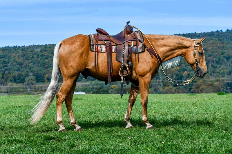 ♦️ 𝐭𝐡𝐞 𝐀𝐌𝐄𝐑𝐈𝐂𝐀𝐍 𝓕𝓪𝓵𝓵 𝓒𝓵𝓪𝓼𝓼𝓲𝓬 ♦️ Happening now thru MONDAY | OCTOBER 20th - Available EXCLUSIVELY on HorseBid's website! For more details and to register visit: www.Horsebid.com CONSIGNOR CONTACT: Marlis Farms 814-777-0607 LOCATION: Rebersburg PA BREED: Quarter Horse REGISTERED: No COLOR: Palomino HEIGHT: 15.1 AGE: 7 GENDER: Gelding Dallas is a 7 year old gelding standing at 15.1 hands that’s well built and beautiful! He is very versatile, rides English and western and loves to go out on the trails! Dallas is safe, reliable and user-friendly! He has a very smooth, well balanced walk, trot and canter. He picks up both leads, he knows the word “woah” and has a good stop, back up, he neck reins, side passes and is very soft in the bridle! Dallas has no silly quirks, his gentle and forgiving personality makes him suitable for more inexperienced riders! On the trails is where Dallas really shines! He absolutely loves adventure. We have ridden him up in the mountains and down through town and he’s enjoyed every bit of it! Dallas has no spook and easily crosses over logs, bridges, creeks, railroad tracks etc. He is traffic safe and doesn’t mind the commotion of busy streets, pedestrians, dogs or bicycles! Dallas is all around a good boy and a reliable horse to have in the barn! He has good manners, he stands well for the vet, farrier and dentist! No bad habits or vices, he can be turned out in a mixed herd or be stalled. Dallas sells 100% sound and ready to move into his forever home! For more information or to schedule a visit to meet Dallas, call Mark @ 814-777-0607