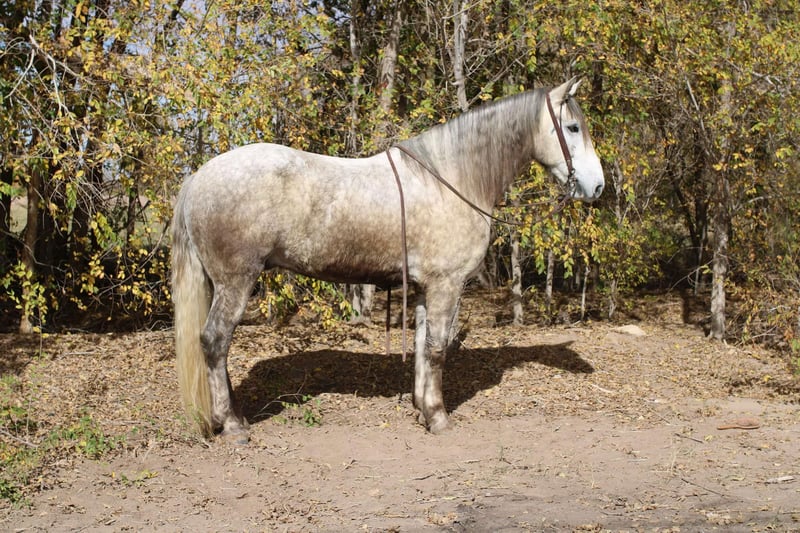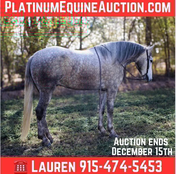 ONLINE AUCTION Place your bids at www.PlatinumEquineAuction.com Starting Bid $3500 Auction ends December 15th, 2024 Need a new saddle? Check out White Rock Saddles on our website or Facebook! Thunder is a show stopper! He will be the literal gentle giant, anyone can get along with him. He’s an absolute gentleman . Thunder is a 5 (coming 6) yr old draftcross gelding that stands 16h tall! Thunder stands nice and easy for you to mount him and he will stand for you to mount him off a stool if you need a boost. Once you’re mounted he’s all business. He’s super fun to ride he’s a solid horse. We use him in all aspects of ranch work from checking on cattle and gathering in rough country to roping steers in the arena. Thunder is a solid head horse he’s good in the box and is strong to the horn. I believe he would make a great pick up horse in the rodeos or even cooler a police horse! Thunder will travel out like a little horse, he has a great handle, he lopes pretty circles he knows his leads and will stop at woah! He’s very confident where ever you point him he’s committed and will go as asked. We also just have fun on him and cruise down the road nothing bothers him. He’s safe for his size he’s just a big pup that wants to be your friend. He’s easy to catch, shoe, saddle, bathe, load, haul and will stand to be mounted. Thunder has lived up to every aspect of his name, he is a BIG, PRETTY SHOWSTOPPER! Contact Lauren Lara 915-474-5453 with any questions. Located in El Paso, TX. ONLINE AUCTION Place your bids at www.PlatinumEquineAuction.com Starting Bid $3500 Auction ends December 15th, 2024 Need a new saddle? Check out White Rock Saddles on our website or Facebook!