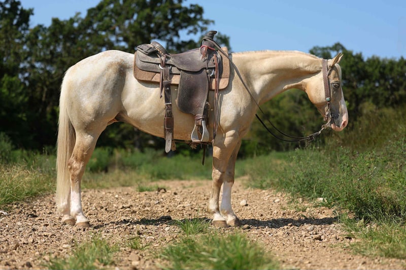 ONLINE AUCTION Place your bids at www.PlatinumEquineAuction.com Starting Bid $3500 Auction ends September 7th, 2025 Need a new saddle? Check out White Rock Saddles on our website or Facebook Meet Ricky Bobby! Introducing Ricky your palomino prince! A 7 year old grade POA Gelding. Ricky is the full all around package, standing 14.1 HH but built to last. Ricky has a beautiful confirmation, a good foot, clean legged, deep in the chest with a very nice hip. Ricky Bobby is everyone’s night in shining armor, he has the personality of a saint. Always the first to greet you at the gate, easy to catch awaiting whatever adventure you point him towards. Want to lead your kid around the yard? He’s solid. Trail ride through the trees, water, wildlife, vehicles? Ricky is going to take care of you every step of the way. Ricky is not only a joy to pleasure ride but is an athlete in and out of the arena. This young, athletic gelding has smooth lead departures, rides soft in the face and moves off your leg beautifully with a nice stop. Ricky has a true one hand neck rein, whether you’re asking him to lope circles or a nice spin he’s got you covered. Ricky is incredibly versatile, he’s gentle and quiet enough for the kids to take to play days or you can take him on a hard days work. This exceptional gelding has roped and doctored in the pasture and been used to push cattle at the sale barn and will go as long as you ask. Ricky sells 100% sound and sane. Call AM Equine Alexis 660-438 0306 for further questions. Located in Cole Camp, MO. ONLINE AUCTION Place your bids at www.PlatinumEquineAuction.com Starting Bid $3500 Auction ends September 7th, 2025 Need a new saddle? Check out White Rock Saddles on our website or Facebook