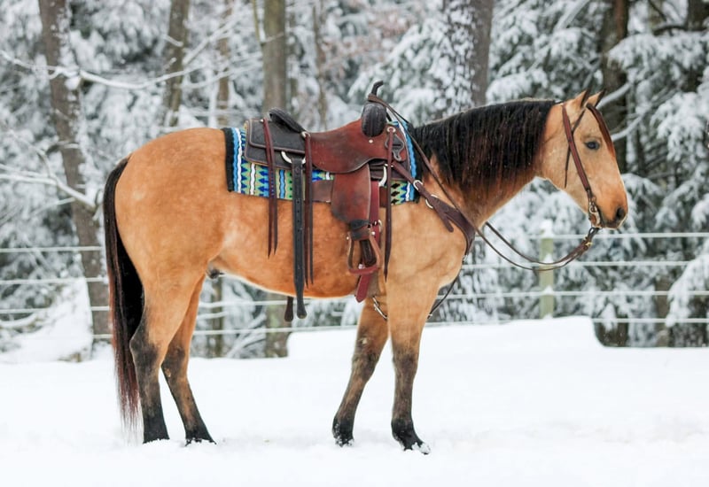 🎄𝐓𝐇𝐄 𝑯𝒐𝒍𝒊𝒅𝒂𝒚 𝐂𝐋𝐀𝐒𝐒𝐈𝐂🎄 Happening now thru MONDAY | DECEMBER 15th - Available EXCLUSIVELY on HorseBid's website! For more details and to register visit: www.Horsebid.com CONSIGNOR CONTACT: KS Horses 814-229-3290 LOCATION: Clarion, PA BREED: QH REGISTERED: No COLOR: Buckskin HEIGHT: 14.3 AGE: 7 GENDER: Gelding Banker is a 7 Year Old Super Good Looking Buckskin Quarter Horse Gelding. He stands 14.3 hands tall making him nice and easy to mount and dismount but Banker is also stocky enough to carry any size rider. Wow Check Him Out!! Who Doesn't Love a Buckskin ? In my opinion he is the best color God put on a horse. Banker is a good broke safe all around gelding. If your wanting a trail horse deluxe , arena horse or ranch horse Banker can do it all. He is great on the trails and rides out alone or with other horses. Good on the rough terrain and goes thru water with ease. Just watch his video and let him speak for himself. Great in the arena and has a nice walk, trot and canter. Carries the American Flag with ease . Nothing phases him or bothers him under saddle. He would also make a good ranch horse to take out and work and push the cattle around. Banker has lots of miles under his belt making him very seasoned and dependable! No tricks up his sleeve. Very Honest. Banker just had a full Health and Lameness Exam on 12-1-25 Which he passed with flying colors. You will like his one hand neck rein, good stop , back up and side pass. He is very well trained. Dont miss out on this super nice all around buckskin gelding. Feel free to Call or Text Kris anytime at 814-229-3290. We can also help arrange shipping anywhere in the United States.