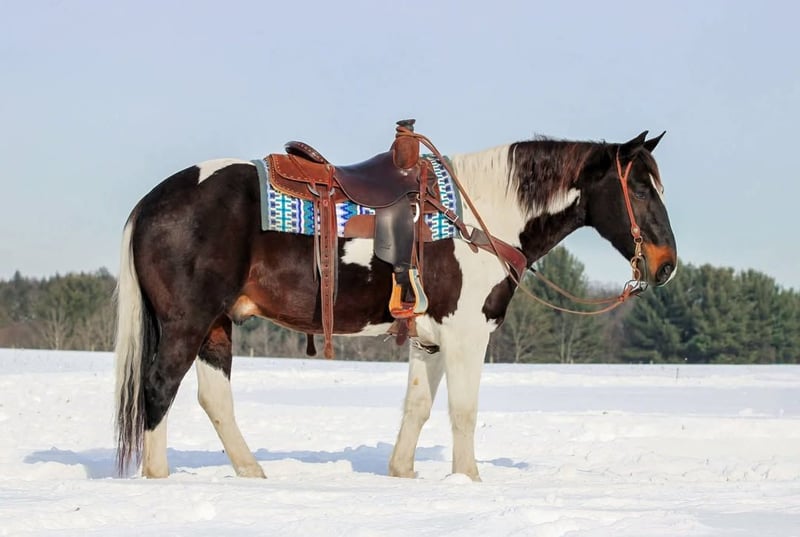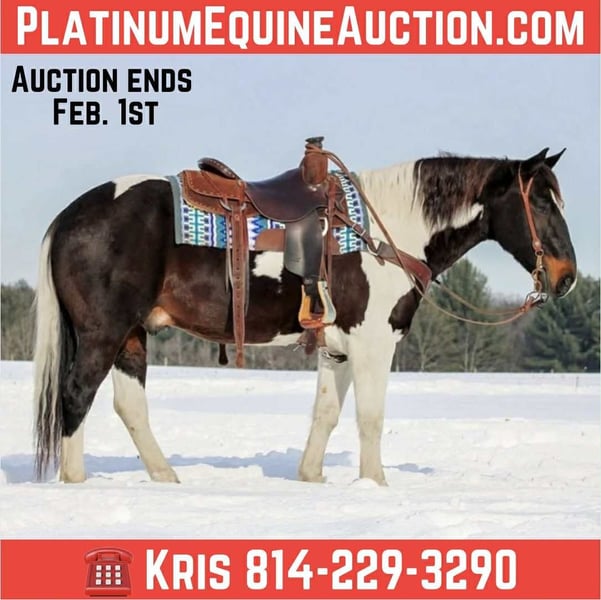 ONLINE AUCTION Place your bids at www.PlatinumEquineAuction.com Starting Bid $3500 Auction ends February 1st, 2026 Need a new saddle? Check out White Rock Saddles on our website or Facebook Hollywood is a 8 Year Old Good Looking Fancy Paint Gelding. Standing 14.3 hands tall and super thick and stocky built. He is a nice size making him easy to mount or dismount but also is stocky enough to carry any size rider. Hollywood is the kind of horse that everyone wants and needs but also the kind of horse that is very hard to find. He is a great trail horse. Goes anywhere you ask him to go on the trail . Has been on many miles of trails. Trail rides with other horses or by himself. Hollywood is good with the tarp, big ball and even crack the bull whip off him. He has been ridden down the road and is traffic safe. Hollywood has one of the nicest smoothest lopes, and picks up his correct lead each time in the arena making him a good candidate for a lesson horse. He has also been used to move cattle around on the farm . Super friendly and easy to catch. Loves attention. Good for the vet, farrier and easy to bath. Not complicated at all to ride. Super easy get on and point and go! Dont miss out on this super nice all around gelding . We can help arrange shipping anywhere in the United States from Clarion, PA. Call or Text Kris with KS Horses 814-229-3290. Thank You and God Bless. ONLINE AUCTION Place your bids at www.PlatinumEquineAuction.com Starting Bid $3500 Auction ends February 1st, 2026 Need a new saddle? Check out White Rock Saddles on our website or Facebook