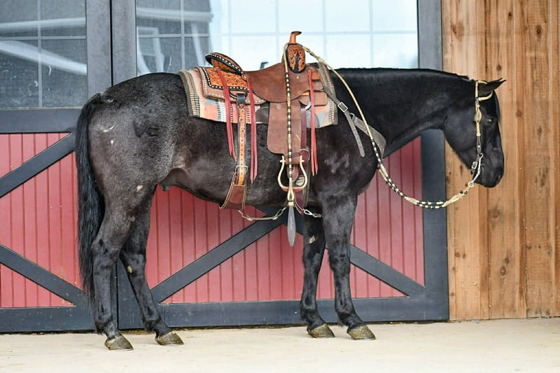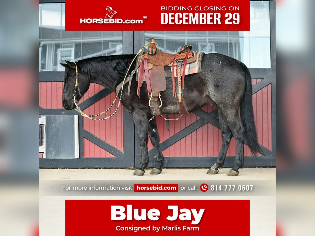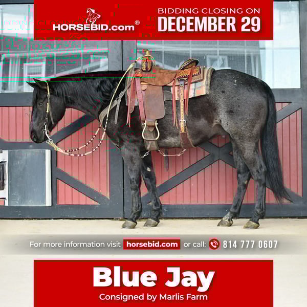 ⚜️ 𝓗𝓮𝓻𝓲𝓽𝓪𝓰𝓮 𝐖𝐢𝐧𝐭𝐞𝐫 𝓒𝓵𝓪𝓼𝓼𝓲𝓬⚜️ Happening now thru MONDAY | DECEMBER 29th - Available EXCLUSIVELY on HorseBid's website! For more details and to register visit: www.Horsebid.com CONSIGNOR CONTACT: Marlis Farm 814 777 0607 LOCATION: Rebersburg, PA BREED: Quarter horse REGISTERED: Yes REGISTERED NAME: BlueJs Easy Streak COLOR: Blue roan HEIGHT: 15 AGE: 7 GENDER: Gelding BlueJs Easy Streak AKA Blue Jay is a 7 yr old registered blue roan AQHA gelding that stands the perfect height of 15 hands. Not only is he pretty and good size, he is also gentle and well broke to ride, he neckreins, sidepasses and has a good stop. Blue Jay rides english and western. In the arena he picks up both his leads and has a smooth walk, trot and canter and he takes a jump. Blue Jay is a seasoned trail horse and will go over logs, through water and wherever you point him. We have taken Blue Jay downtown to run errands and he doesnt mind all the commotion and traffic, he rides the same everyday you get him out. Blue Jay is one of the top picks to go on a trail ride because he takes care of his rider no matter the situation. He does well inside and turned out in a mixed herd. He stands to be tacked, mounted, bathed and for the farrier. Blue Jay loads and unloads like a champ. He sells safe and sound and ready to move into his forever home. For more info or to come meet him call Mark 814 777 0607 (call only) We can help arrange shipping anywhere!