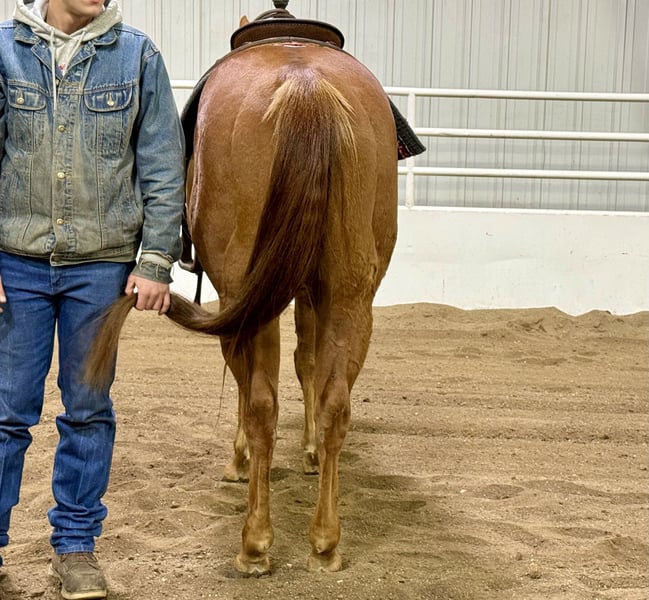 🎄𝐓𝐇𝐄 𝑯𝒐𝒍𝒊𝒅𝒂𝒚 𝐂𝐋𝐀𝐒𝐒𝐈𝐂🎄 Happening now thru MONDAY | DECEMBER 15th - Available EXCLUSIVELY on HorseBid's website! For more details and to register visit: www.Horsebid.com CONSIGNOR CONTACT: Gabriel Murphy 320-339-1458 LOCATION: Cannon falls, mn BREED: Qaurter horse REGISTERED: No COLOR: Sorrel HEIGHT: 15 AGE: 7 GENDER: Gelding Here’s a gem you won’t want to miss: a stunning sorrel gelding built to last. Standing at 15 hands high, he boasts broad hips and a sturdy build, thanks to his impressive horn. Axle is exceptionally well-bred, gentle, and safe for families. He has a comfortable neck rein, soft in the face and sides, and carries his head low on a loose rein. In the arena, Axle demonstrates a smooth lope, a powerful stop, and a graceful reverse. He effortlessly navigates the trail course, showcasing his charming personality. He’s adept at side passing and stepping around, making him a versatile and enjoyable companion. Axle can ride bareback, with or without a bridle, and is traffic-safe and sound. Axle has spent countless hours riding outside on the trails and the ranch, making him a seasoned trails professional. He’s been recognized and taken on overnight camping trips and ridden in the mountains. On the trails, he rides in the front or the back, maintaining a leisurely pace. He’s been on the road and is well-versed in handling traffic. Axle has also been used for pasture roping, cattle doctoring, and fence inspections. Axle is an absolute fit for any rider, capable of going in any direction. He’s a top-hand ranch horse, a trail deluxe with the off-road package, and a versatile rope horse. No matter where you take him, he’ll be a fun and reliable companion. Axle is easy to bathe and stands well for veterinary and farrier care. He’s up-to-date on vaccinations and deworming, and he loads in any size trailer and steps off easily. Location: Cannon Falls, MN