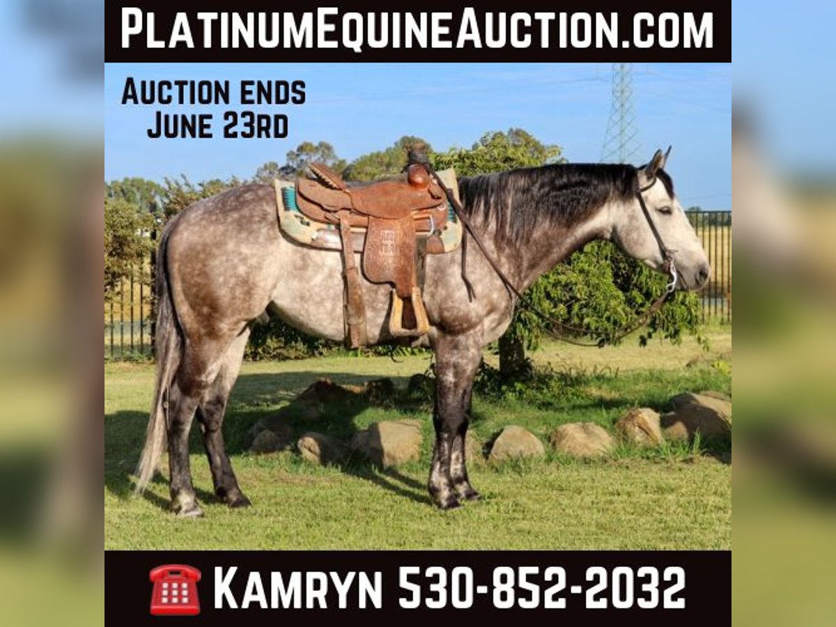ONLINE AUCTION Place your bids at www.PlatinumEquineAuction.com Starting Bid $3500 Auction ends June 23rd, 2024 Need a new saddle? Check out White Rock Saddles on our website or Facebook! Meet 2 Pac (aka Paco) a 6 year old 15.1 HH gelding. Introducing 2 Pac, affectionately known as Paco, a horse who is truly worth his weight in gold. He is big boned and big feet not petite quarter horse legs. He is as thick as he is tall. Paco is not just a horse; he is a barn favorite with a personality that shines as bright as his name suggests. With his puppy dog loving demeanor, Paco is sure to win your heart and become your best friend. Paco is the embodiment of a horse with heart. He has a super “in-your-pocket” personality, always eager to be near people, showering them with affection. Paco’s loving nature is complemented by his goofy antics that will keep you chuckling and entertained. His presence lights up the barn, and he has won the hearts of everyone around. We will surely miss him at the ranch, but we know he is ready to bring joy and companionship to his new home. Paco is not just a charmer; he’s also exceptionally talented and well-trained. In the arena, Paco is fancy broke with skills that are hard to beat. He has a great stop, impressive spins, flying lead changes, and the ability to collect his head beautifully. He can side-pass with ease, showcasing his versatility and training. Paco has a “been there, done that” personality, making him reliable and trustworthy in any situation. On the trails, Paco is a true gentleman. He handles any task with ease and grace, whether it’s going through water, stepping over logs, or navigating rocky and muddy paths. Paco doesn’t bat an eye at any terrain, making him the perfect partner for all your outdoor adventures. He’s been ridden under city lights and is completely town safe. Cars, honking horns, quads, dirt bikes, joggers, loose dogs, airplanes, and scooters – you name it, Paco has seen it all and could care less. Pacos bravery is unmatched. He’s had flags waved around him, tarps flapping in his face, and he remains unphased. We’ve even roped the sled on him a few times, and he takes it all in stride with ease. Paco has been our go-to horse for gathering cows in the mountains, participating in overnight camping trips, poker rides, beach rides, and everyday trail rides. He’s also been a star in parades, handling the excitement and chaos with over 50 other horses like a pro. Whether Paco is part of a group or out on his own, he remains calm and collected. He can happily go out alone without a care in the world. Paco is more “woah” than “go,” enjoying a relaxed pace as he cruises around town or the neighborhood. His easy-going nature makes him perfect for riders of all experience levels. Paco is a one-of-a-kind horse with a heart of gold and a personality that will make you fall in love instantly. He’s done it all and is ready to bring his special charm to a new home. Don’t miss this opportunity to own a true gem of a horse. Paco is also UTD on shoes, worming, shots, chiro. Contact us today at KW Ranch Kamryn 530-852-2032 to meet Paco in Pleasant Grove, CA and see for yourself why he is such a beloved member of our ranch. He’s ready to be your new best friend and loyal companion, ready for any adventure you can dream of. ONLINE AUCTION Place your bids at www.PlatinumEquineAuction.com Starting Bid $3500 Auction ends June 23rd, 2024 Need a new saddle? Check out White Rock Saddles on our website or Facebook!