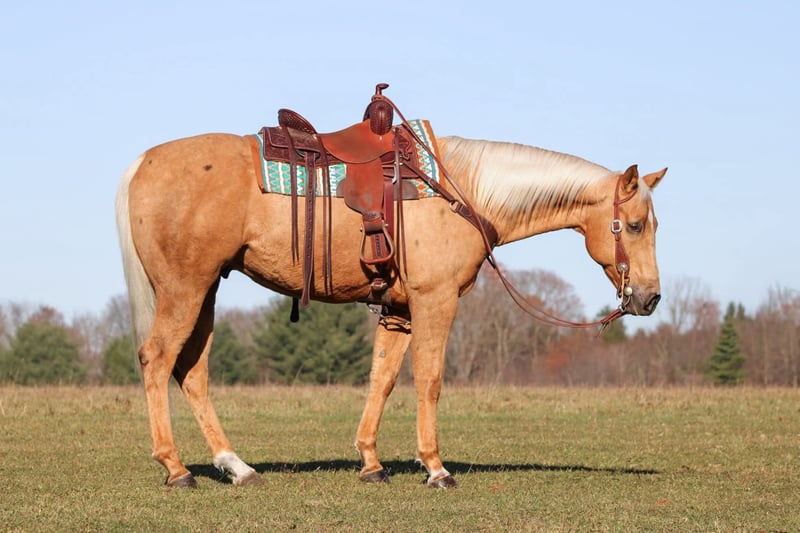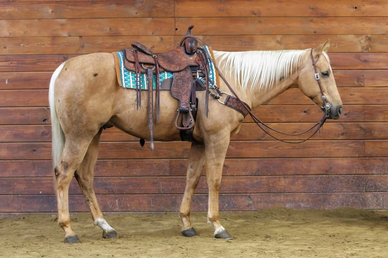 ⚜️ 𝓽𝓱𝓮 𝐇𝐨𝐫𝐬𝐞𝐦𝐚𝐧'𝐬 𝓢𝓱𝓸𝔀𝓬𝓪𝓼𝓮⚜️ Happening now thru MONDAY | DECEMBER 1st - Available EXCLUSIVELY on HorseBid's website! For more details and to register visit: www.Horsebid.com CONSIGNOR CONTACT: LT Equine 724-664-5327 LOCATION: Miola, PA BREED: AQHA REGISTERED: Yes REGISTERED NAME: Cashes Colors COLOR: Palomino HEIGHT: 15.2 AGE: 7 GENDER: Gelding Butters is an absolutely gorgeous palomino gelding with the coolest dark “Bend-Or Spots” on his body that make his color very unique! He stands approximately 15.2 1/2 hands tall with a nice build, good solid legs, and feet. Butters is one of those horses that always wants to be friends with everyone. He doesn’t have a mean bone in his body. He will stand there with you all day and soak up all the attention he can get. He’s had kids mess around with him for hours and he stands perfectly still and does whatever they ask of him. He has phenomenal ground manners, I don’t know about you but that’s very important to me. He’s stands tied quietly, whether in cross ties, on the trailer, to the arena gate. Or just standing in the arena ground tied as you walk around and set up jumps or ground poles! He loads and unloads on the trailer nicely. He stands there patiently without pawing or swaying. He has great stall manners and is easy to catch out in the pasture field. He is a passive horse so he tends to be lower on the pecking order in the field. As for riding Butters is a great ride that any level rider will enjoy! He has never offered to buck, bolt, or rear. He stands great to be mounted from the ground or the mounting block. He has a nice one hand neck rein and will move off leg pressure ques. He sets his head and will trot/jog smoothly. His lope is so smooth that you could quite literally sit it all day! He picks up both leads with ease. And is well seasoned on small circles he keeps a smooth collection with contact or a loose rein! In my opinion Butter would make a FANTASTIC English horse. I have started him over small cross rails and he just has a natural ability that someone could really fine tune. That being said I’m not the best English rider, but I try, and he is so forgiving! He don’t mind if I loose balance or accidentally bump him he keeps his composure and just waits for me to correct myself. With that type of disposition I think he would make a wonderful lesson horse. He has seen more arena riding than trail riding but that doesn’t bother him any he’ll go right out in the woods and across the creeks and through the mud! He’s not a spooky horse he may look at things but no crazy spook! I have had all levels of rider on him and get along with him great. Butter has a Health Check from the vet and current coggins. He is ready to saddle up and go! We can help coordinate shipping, and if you can’t make it to see him in person I’m more than happy to do a FaceTime video with you! For any more information please give me a call or text 724-664-5327.