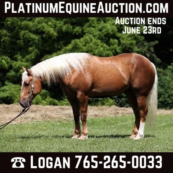 ONLINE AUCTION Place your bids at www.PlatinumEquineAuction.com Starting Bid $3500 Auction ends June 23rd, 2024 Need a new saddle? Check out White Rock Saddles on our website or Facebook! Dream horses do exist and Aspen is living proof of that! Talk about a horse that gets ALL of the looks where ever he goes!!! Aspen is a super stout built Golden Dappled Palomino Draftcross gelding standing around 15.2hh and he is 6 years old! In the fall/winter Aspen has more dapples than your eyes can count, as he is a high contrast dappled palomino. In the summer he is a dark golden palomino with chocolate highlights… he is always BEAUTIFUL!!! Aspen has been with us for almost 2 years now and we used him as my personal horse. He went through the natural horsemanship training and learned some tricks a couple years ago, where he would bow and lay down. Aspen has been used to around cattle and has caught wild ones, (roped/tied down), he has been used in the branding pen and used to doctor as well. He has been ridden down the highways, we have had him in town and he is very traffic safe. Aspen is great on trails and he will cross creeks, ditches, logs and navigate rough rocky areas. He has a smooth jog, a VERY VERY nice easy to set lope, a good stop, spins a circle both ways and backs with ease! He has been exposed to all kinds of wildlife such as deer or turkey or other animals like cows or dogs and will go anywhere that he is asked too. He has been rode many miles in the mountains of Eastern Kentucky and encountered every obstacle possible on the trail. He will go up or down even the steepest slopes, across deep creeks, over downed trees, and over all types of rough terrain while still being sure footed. Aspen is not cinchy, cold backed, does not crib or weave. Located in Level Green, KY. Feel free to call Moore Trained Horses Logan 765-265-0033 with any questions. ONLINE AUCTION Place your bids at www.PlatinumEquineAuction.com Starting Bid $3500 Auction ends June 23rd, 2024 Need a new saddle? Check out White Rock Saddles on our website or Facebook!