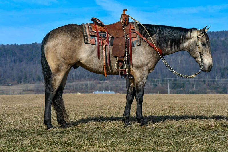 𝐉𝐀𝐍𝐔𝐀𝐑𝐘 ⭐️𝑨𝒍𝒍 𝑺𝒕𝒂𝒓 𝑳𝒊𝒏𝒆𝒖𝒑⭐️ Happening now thru MONDAY | JANUARY 26th - Available EXCLUSIVELY on HorseBid's website! For more details and to register visit: www.Horsebid.com CONSIGNOR CONTACT: Marlis Farm 814-777-0607 LOCATION: Rebersburg, PA BREED: Quarter horse REGISTERED: Yes REGISTERED NAME: Poco Buckin Doc Bar COLOR: Buckskin HEIGHT: 15.3 AGE: 8 GENDER: Gelding "Poco Buckin Doc Bar" is a gorgeous 2017 model buckskin gelding that goes by the name of Hickory in our barn. Hickory is and 8 year old AQHA registered gelding that stands 15.3 hands tall and is built like a tank. Hickory is exceptionally well broke, he neckreins and side passes and has a smooth walk trot and rocking chair slow lope. Hickory has been a pleasure to have around and he does not have a bad day it seem, he doesnt shy or jump away from objects, he just stops and looks and keeps on walking like hes seen it everyday. Hickory is a well minded gelding thats super gentle and gives you his 100% everytime you take him out. Hickory rides great in the arena and picks up his correct leads. He has been on trail rides and rides out alone or in a group. Hickory rides the same everyday, we can let him sit a month and tack him up and he lopes off like he never missed a beat. Hickory has been to town and traffic doesnt bother him. I think anybody can ride him whether you are inexperienced or you want to take him and show him. Hockory is very gentle and loves attention and will walk up to you in the pasture everytime. He has been exposed to different farm animals and different obstacles and doesnt mind the tarp or bouncing balls and will carry the flag. Hickory stands to be washed and bathed, stands to be tacked and mounted and rides off with spur pressure or woice commands. Hickory sells sound and with no bad habits. He has a current coggins test and is ready to move into his forever home. I hope that his new family enjoys him as much as we do. Feel free to call Mark with any questions and or if youd like to come see him, 814 777 0607 We can help arrange shipping anywhere!!