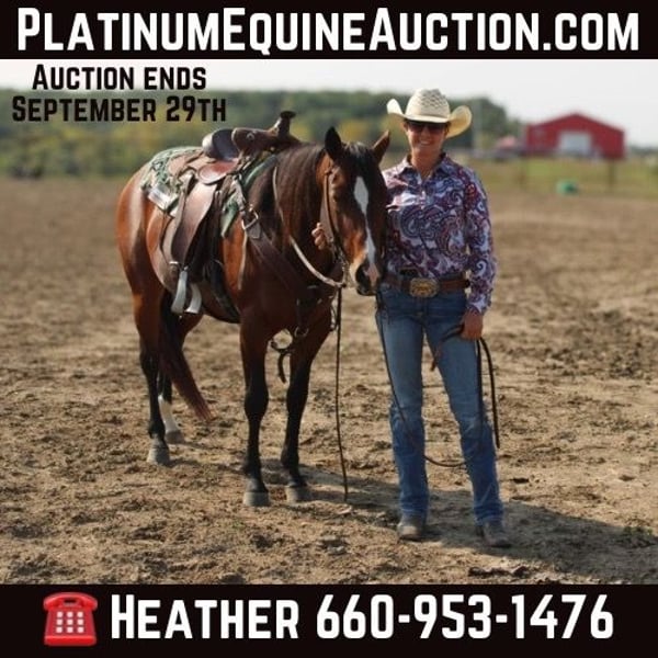 ONLINE AUCTION Place your bids at www.PlatinumEquineAuction.com Starting Bid $3500 Auction ends September 29th, 2024 Need a new saddle? Check out White Rock Saddles on our website or Facebook! “JB” (MR JB 1817) is a 2018, AQHA gelding. JB stands 14.1 hh tall, he is the perfect size mount to get you around the trails. JB sells 100% soundness gauruntee. He is sure footed and has so much talent, with brains to boot. He will meet you in the pasture, super easy to catch. The smallest kiddos can handle JB, he has great manners. JB has been hauled many places, he hauls great and adapts to new environments easily. He is laid back, not spooky, point him where you want him to go and he will take you. He has a nice smooth trot and rockin chair lope. JB has seen countless miles of trails, he will cross logs, go thru water, swim, traffic/ equipment safe, super quiet guy. He has been lightly started on cattle, primarily we have trail ridden him all over the midwest. Hauled him to chuckwagon races, he has been exposed to wagons, mules, ponies tarps, obstacles. This is one you wont want to miss to keep you safe out on the trails or give him a job as a ranch hand. We would love to help JB find a partner, who can enjoy him as much as we have! For any questions please call HR Equine Heather 660-953-1476 Located in Pricneton, MO. ONLINE AUCTION Place your bids at www.PlatinumEquineAuction.com Starting Bid $3500 Auction ends September 29th, 2024 Need a new saddle? Check out White Rock Saddles on our website or Facebook!