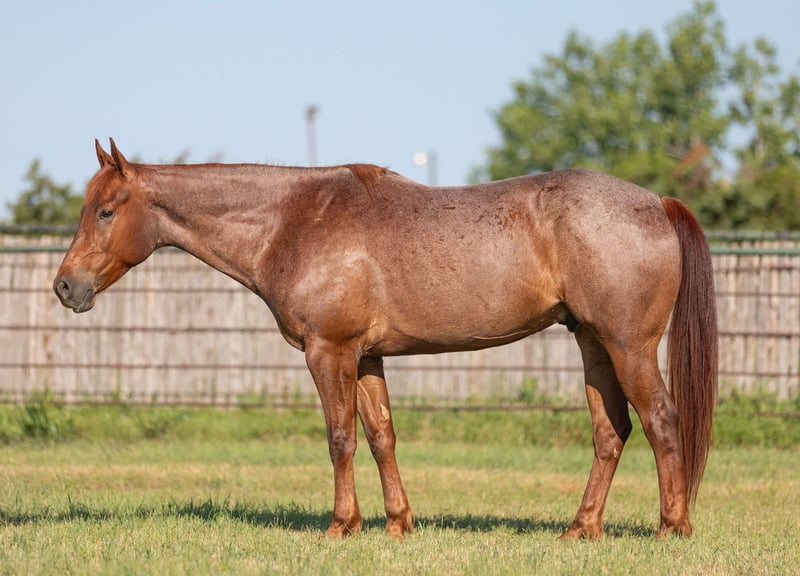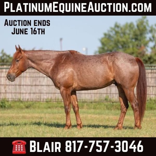 ONLINE AUCTION Place your bids at www.PlatinumEquineAuction.com Starting Bid $3500 Auction ends June 16th, 2024 Need a new saddle? Check out White Rock Saddles on our website or Facebook! Calvin is a 6 yr old, 15.2H red roan gelding. If you want beauty and brains, look no further! Calvin is all that and then some! He’s absolutely stunning and the type of roan you see in movies! He has been a trail/ranch horse his whole life and is ready to go on with! He has seen many miles of trails and pushed lots of cows in the pasture! Calvin has a sweet personality and wants to please! He rides one handed and moves off your leg and is always ready for the next adventure! He’s very comfortable and easy! He’s and trail riders dream and he finds a way to make every ride FUN! He has zero buck, bolt or rear and hasn’t done anything to make us believe he’d be anything but safe! Calvin is gentle to be around and uncomplicated to get along with! He would make a really nice trail/ranch pleasure horse as he is, or he’d be a nice performance horse prospect! He’s big enough to go make a rope horse and also has some speed when asked. He goes the speed you ask, when you ask it and stops right when you tell him to! He loads, leads, bathes and ties great! He just had his teeth done by an equine dentist and has a fresh set of shoes! Calvin is ready to go and will sure to make someone a really nice, gentle and absolutely GORGEOUS all around horse! Please call Blair with North Texas Horse Company for more info at 817-757-3046. We are located in Weatherford, TX and can help arrange affordable shipping to anyone!! ONLINE AUCTION Place your bids at www.PlatinumEquineAuction.com Starting Bid $3500 Auction ends June 16th, 2024 Need a new saddle? Check out White Rock Saddles on our website or Facebook!