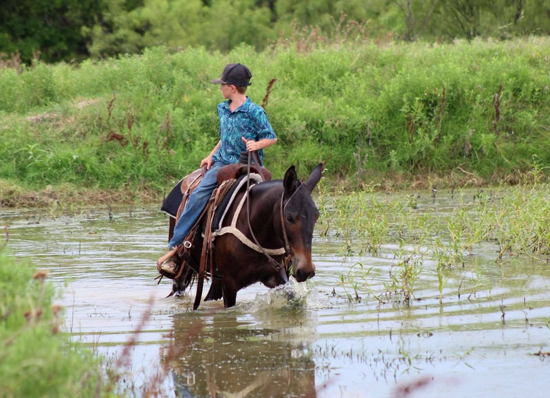 ONLINE AUCTION Place your bids at www.PlatinumEquineAuction.com Starting Bid $3500 Auction ends July 20th 2025 Need a new saddle? Check out White Rock Saddles on our website or Facebook Meet 7UP, the coolest little dude on the block! At just 8 years old and standing 13.2 hands, he’s not only a dream to ride but also a fantastic driving partner. Whether you need him to pull a wagon single or double, 7UP is always up for the challenge! This fun-loving mule absolutely adores hitting the trails and is a natural in the water. He’ll confidently splash through everything from tiny creeks to big, inviting ponds—no hesitation at all! With his sure-footedness, he navigates everything from gentle hills to steep mountain trails with ease. Bridges, logs, tarps? No problem! 7UP is incredibly versatile and has experienced it all. He’s been part of many parades and rodeo grand entries, proudly carrying flags along the way. On the ranch, he excels at riding fence lines and moving cattle, and he’s been a reliable helper at the sale barn, penning cattle and loading trucks weekly. He’s a point-and-go type of mule, making him super easy to handle. Plus, he’s great with the farrier, stands tied patiently, and loads and unloads from the trailer like a champ. Best of all, 7UP gets along with everyone he meets! If you’re looking for an all-around fantastic partner that’s ready for any adventure, 7UP is your guy! Watch his video and see just how cool he is! We are open to anyone interested in him to schedule a time to come see him or if you can’t make it schedule a FaceTime showing to see him. If you need help with transport don’t hesitate to ask we have a list of reputable haulers that can get him safely to your doorstep WORLD WIDE including, Alaska , Mexico, Hawaii, Canada and anywhere in between from Stephenville, TX. Contact M$ Performance Horses Michelle 661-817-9120. ONLINE AUCTION Place your bids at www.PlatinumEquineAuction.com Starting Bid $3500 Auction ends July 20th 2025 Need a new saddle? Check out White Rock Saddles on our website or Facebook