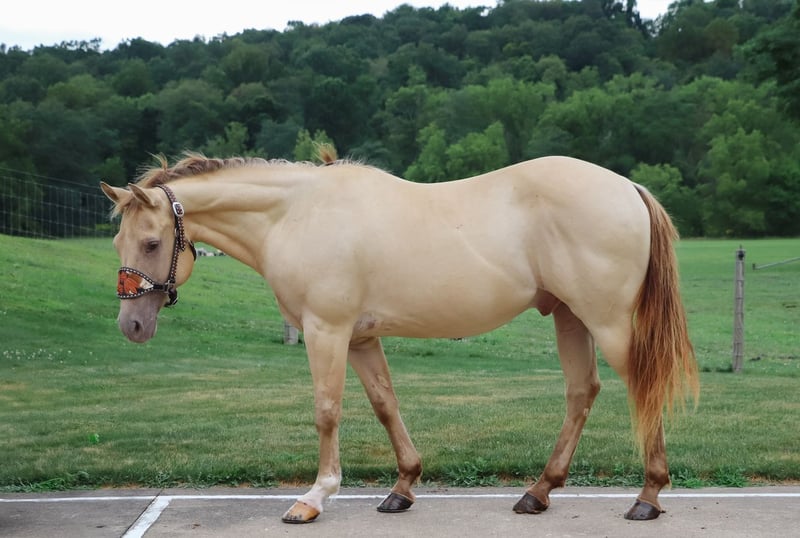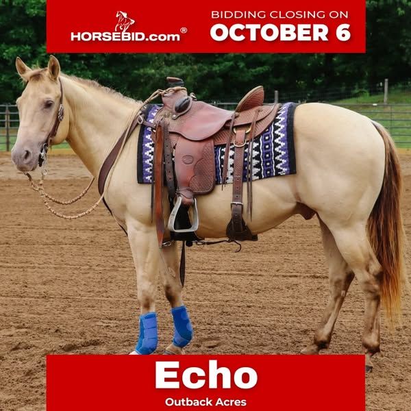 🍂 𝓐𝓾𝓽𝓾𝓶𝓷 𝑨𝑳𝑳 𝑺𝑻𝑨𝑹 𝑳𝑰𝑵𝑬𝑼𝑷 🍂 Happening now thru MONDAY | OCTOBER 6th - Available EXCLUSIVELY on HorseBid's website! For more details and to register visit: www.Horsebid.com CONSIGNOR CONTACT: Outback Acres 330-473-5855 LOCATION: Dundee, OH BREED: Quarter Horse REGISTERED: No COLOR: Champagne HEIGHT: 13.3 AGE: 9 GENDER: Gelding "🌟 Echo – 9 Yr Old Champagne QH Gelding 🌟 Beautiful • Safe • Versatile • One of a Kind If you’ve been searching for that once-in-a-lifetime horse the whole family can enjoy, meet Echo. This stunning 9-year-old champagne Quarter Horse gelding is as rare in color as he is in temperament. He’s the kind of horse you can trust with the kids and grandkids, yet he’s big and broke enough for adults to enjoy as well. Echo is the one you’ll be proud to own — the one that always gets noticed and makes you feel safe every time you swing a leg over. Echo has been my go-to horse when inexperienced riders needed something trustworthy. He has been on an equestrian drill team, carried a flag, and hauled to rodeos, so he’s comfortable in busy, loud environments. He’s been trail riding with hundreds of other horses, crossed creeks and logs, played in the water, and even spent nights out camping. He recently completed a challenging mountain trail obstacle course and handled every single obstacle with ease and confidence. He’s responsive, and fun to ride. Echo neck reins, moves off leg cues, and has smooth, easy gaits that make him a pleasure for riders of all levels. He can even be ridden bridleless and goes just as nicely in a simple halter as he does in a bridle. He stands patiently to bathe, tack, clip, and shoe, and he’s easy to catch and gets along well with other horses. Whether he’s barefoot or shod, he stays 100% sound and ready for his next adventure. Echo is as versatile as they come. He’s been used to sort and pen cattle, round up rodeo bulls, and has been around the barrels and poles and started on jumps. Nothing much fazes him, and he takes care of his rider every step of the way. He’s the rare kind of horse that can safely carry your kids on a quiet trail ride in the morning, then step up and work cattle in the afternoon. He is great to have around the barn and gets along well with any horses in the pasture. He is easy to catch and will meet you at the gate. If I go out to the pasture to bring horses in he is the first one to come up. I hop on him bareback with a halter and use him to bring the rest of the horses in. He has been used to pony other horses. He has been used at the fairgrounds through fair week to direct traffic and was not fazed by all the traffic, loud music, and rides all around him. If he is kept in a stall you might hear him crib every now and then but nothing bad. Horses like Echo don’t come along often. Between his rare champagne color, his kind and willing disposition, and his proven experience in so many settings, he truly is one of a kind. If you’ve been looking for that special partner who can do it all — from the trails, to the arena, to family fun — Echo is the one you’ve been waiting for.