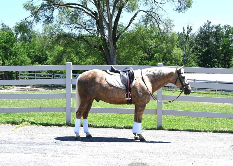 ONLINE AUCTION Place your bids at www.PlatinumEquineAuction.com Starting Bid $3500 Auction ends June 16th, 2024 Need a new saddle? Check out White Rock Saddles on our website or Facebook! Meet Trigger!! He is a total dream horse that catches everyone’s eyes, no matter where you go! From his beautiful golden dappled coat, to his sweet disposition… their is nothing not to love about Trigger. He is a 14.1H, 2017 Model Registered Quarter Horse Gelding. He is broke the absolute best. Whether its english, western or bareback he does it all. He is easy to catch, saddle, bridle, groom, shoe and bathe. He has been trail ridden and knows all about rocky terrain, steep slopes, mud, crosses creeks and crosses deadfall with ease. He is safe riding down busy highways as well. Trigger will walk, trot, canter with ease. He knows his leads, leg pressure and neckreins very well. He gets along with others in the pasture and is easy to catch. Trigger is an absolute family horse type, he is gentle and quiet but if you need to get up and go he can move out as well but always calms down just as soon as he is asked. He is up to date on coggins, rabies vac and worming. He sells sound! If you have any questions contact Silverstar Stables Norman 319-284-0001 Located in Sturgis, MI. ONLINE AUCTION Place your bids at www.PlatinumEquineAuction.com Starting Bid $3500 Auction ends June 16th, 2024 Need a new saddle? Check out White Rock Saddles on our website or Facebook!